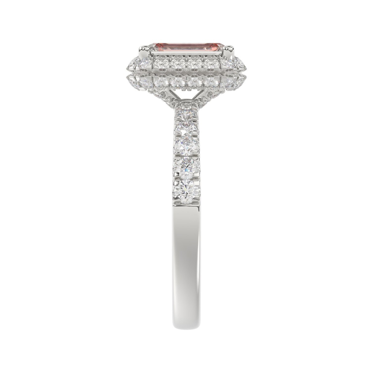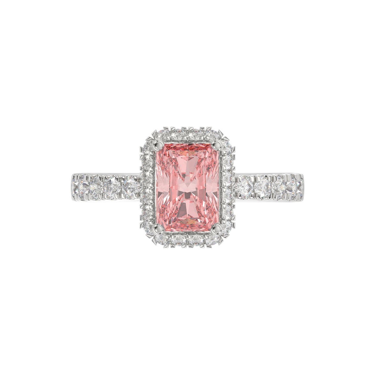 ETERNAL BLUSH COLLECTION 14K WHITE GOLD 1.00CT ROUND/RADIANT DIAMOND LADIES RING (CENTER STONE PINK RADIANT DIAMOND 3.00CT)