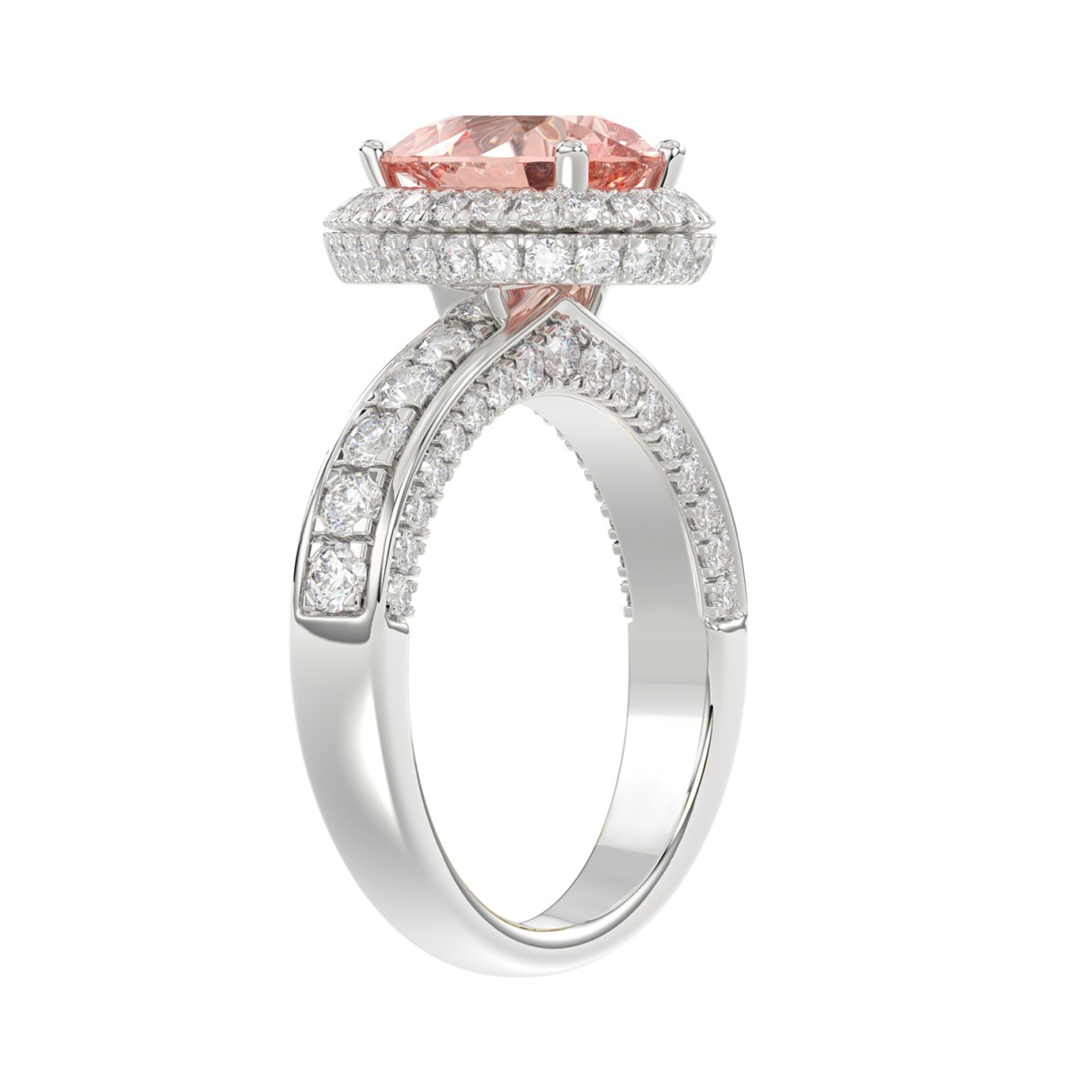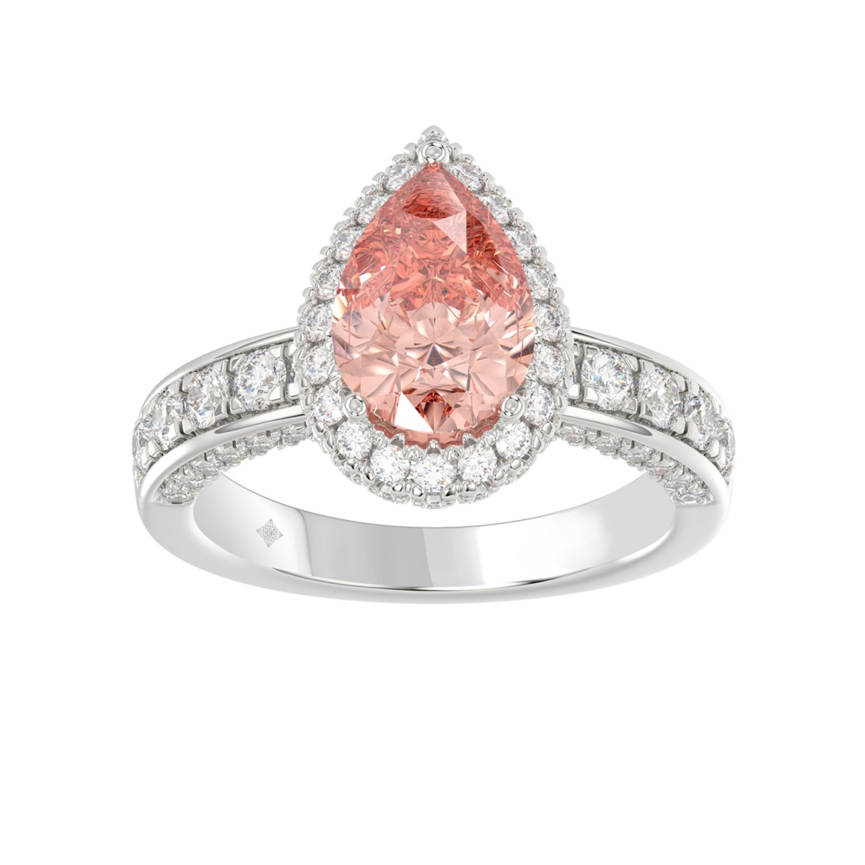 ETERNAL BLUSH COLLECTION 14K WHITE GOLD 3 1/3CT ROUND/PEAR DIAMOND LADIES RING (CENTER STONE PINK PEAR DIAMOND 2.00CT)
