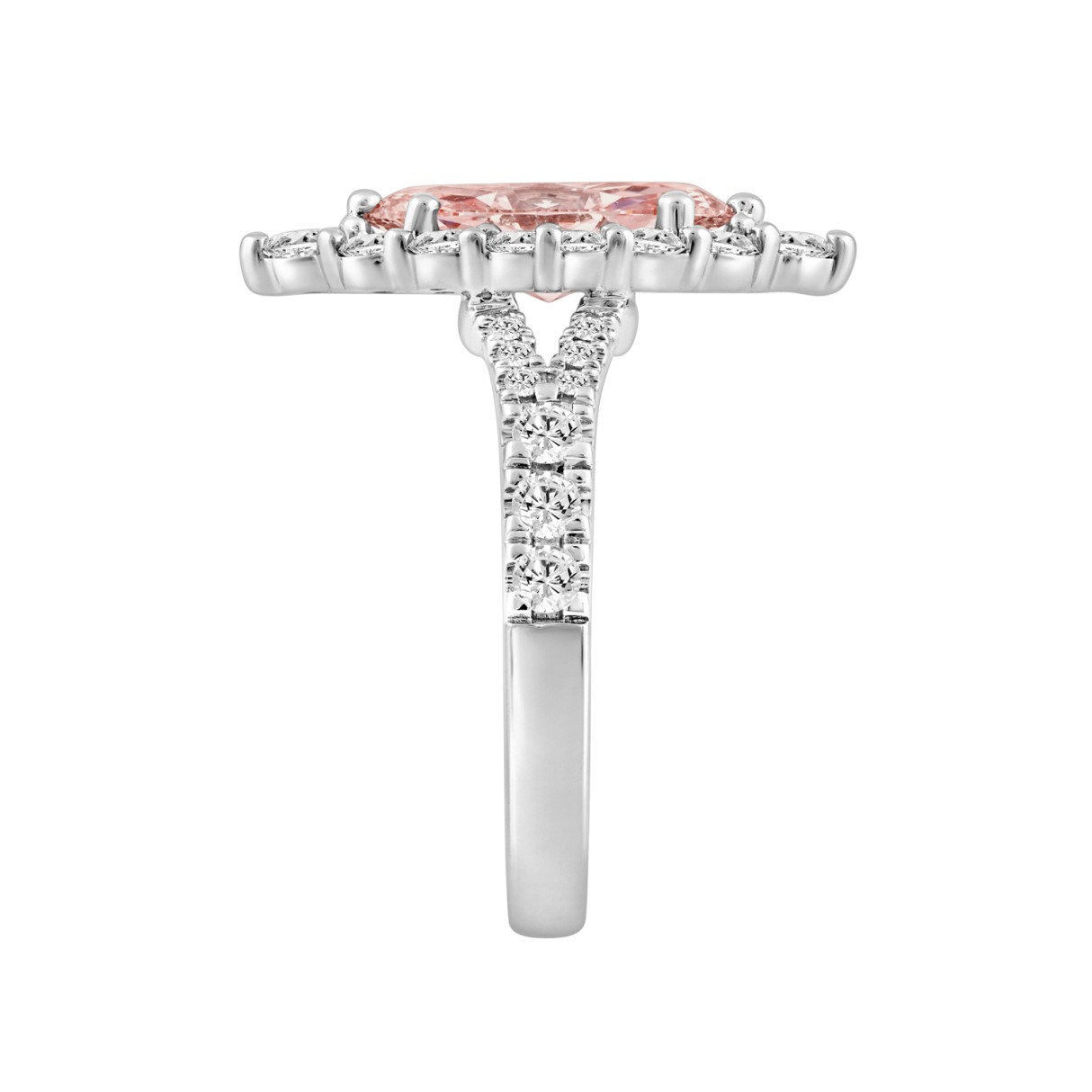 ETERNAL BLUSH COLLECTION 14K WHITE GOLD 3 1/4CT MARQUISE/PEAR/PINK RADIANT DIAMOND LADIES RING (CENTER STONE PINK RADIANT DIAMOND 2CT)