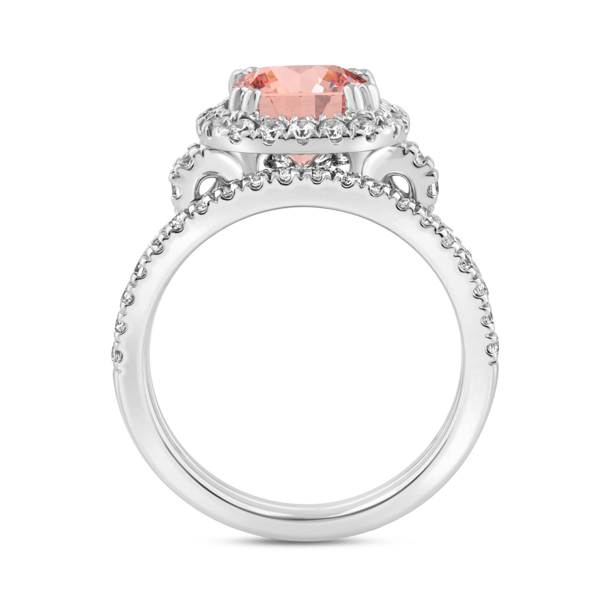 ETERNAL BLUSH COLLECTION 14K WHITE GOLD 3 3/4CT ROUND/ PINK CUSHION DIAMOND LADIES BRIDAL SET (CENTER STONE PINK CUSHION DIAMOND 3CT)