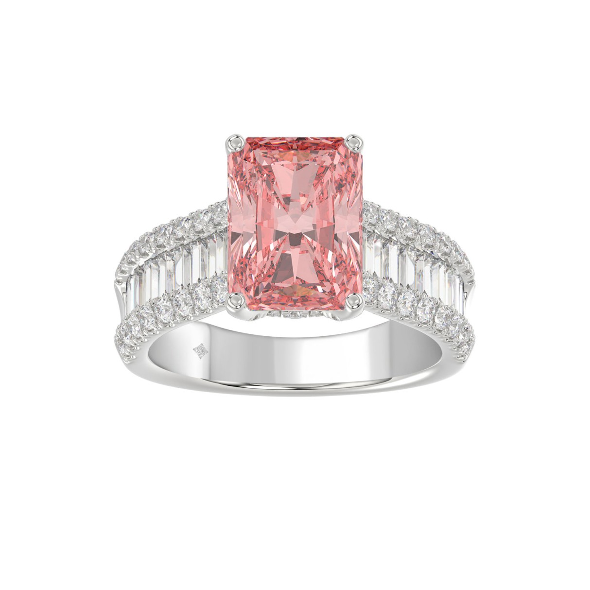 ETERNAL BLUSH COLLECTION 14K WHITE GOLD 4.00CT ROUND / BAGUETTE & PINK RADIANT DIAMOND LADIES RING (CENTER STONE PINK RADIANT DIAMOND 3CT)