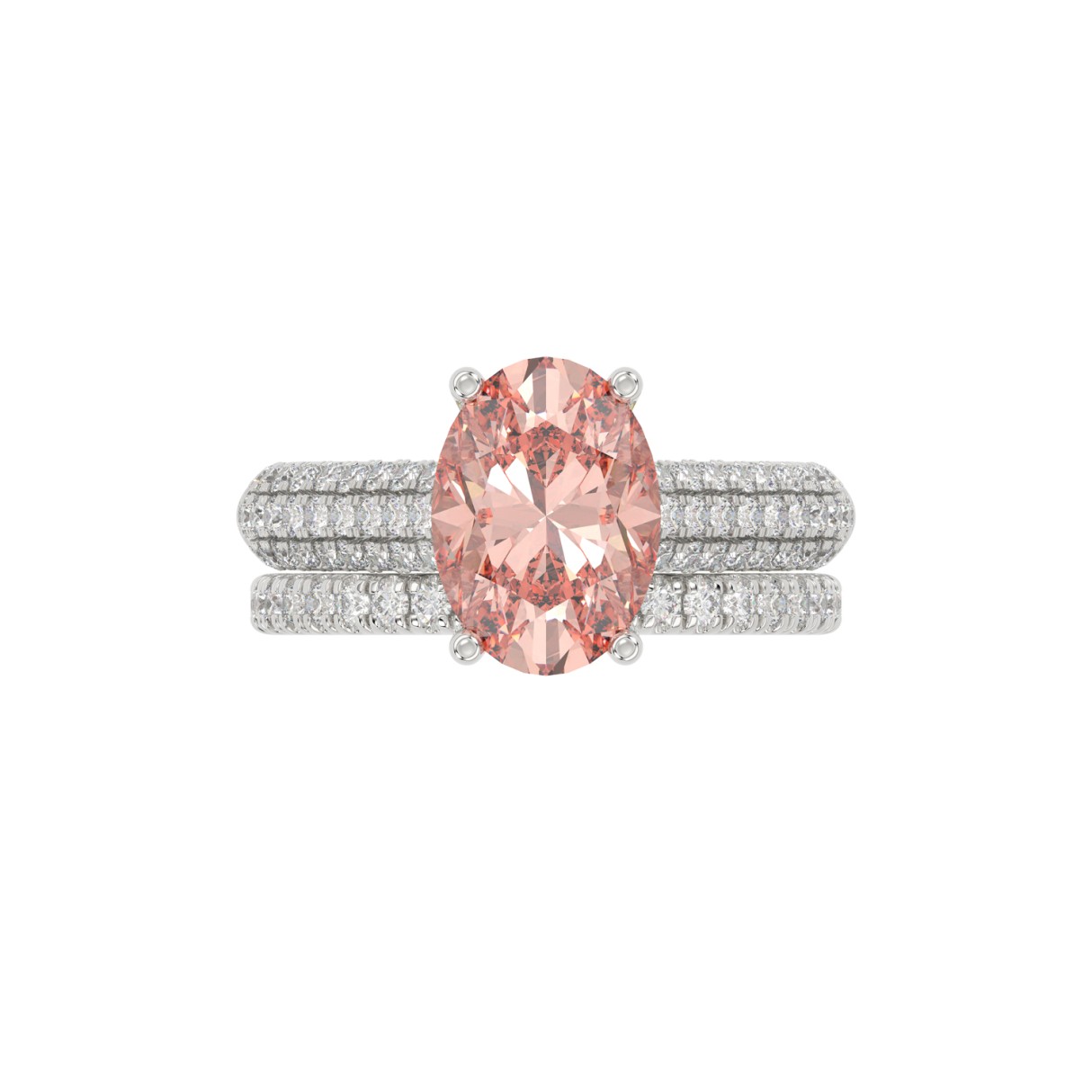 ETERNAL BLUSH COLLECTION 14K WHITE GOLD 4.00CT ROUND/OVAL DIAMOND LADIES BRIDAL SET (CENTER STONE PINK OVAL DIAMOND 3.00CT)