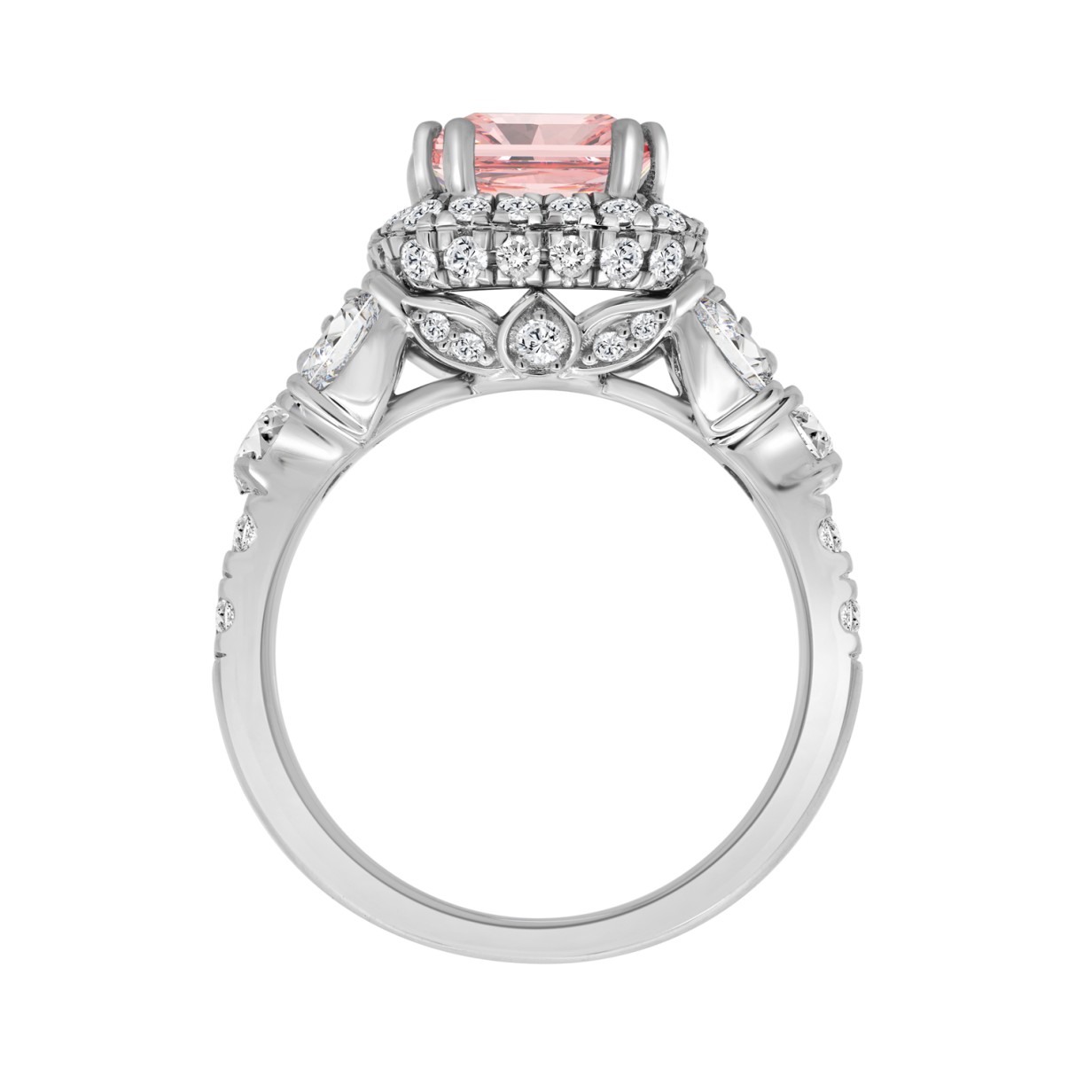 ETERNAL BLUSH COLLECTION 14K WHITE GOLD 4 3/4CT ROUND/PEAR/PINK CUSHION DIAMOND LADIES RING (CENTER STONE PINK CUSHION DIAMOND 3.00CT)