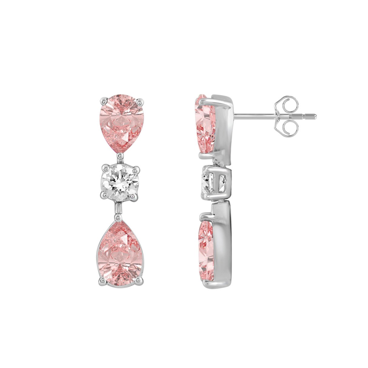 ETERNAL BLUSH COLLECTION 14K WHITE GOLD 5 1/2CT ROUND/ PINK PEAR DIAMOND LADIES EARRINGS