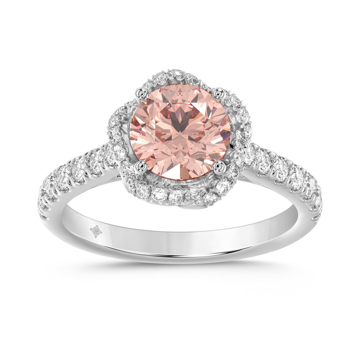 ETERNAL BLUSH COLLECTION LADIES RING 1 1/2CT ROUND DIAMOND 18K WHITE GOLD (CENTER STONE PINK ROUND DIAMOND 1.00CT)