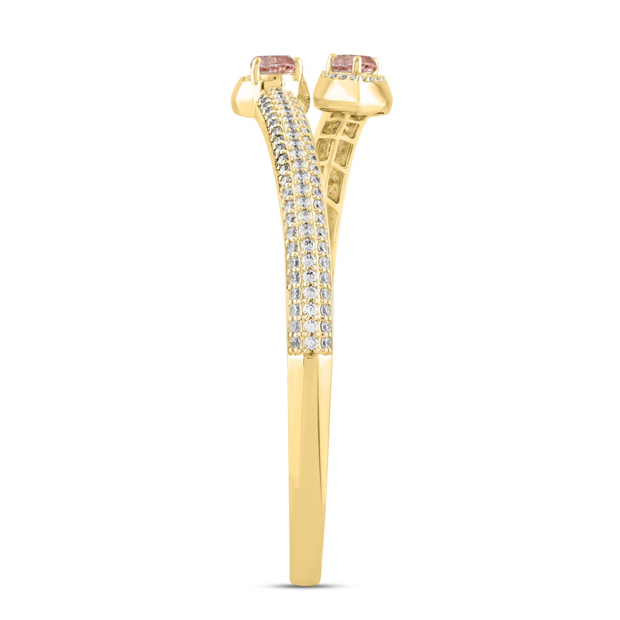 ETERNAL BLUSH COLLECTION LADIES BANGLE 3CT ROUND/PEAR DIAMOND 14K YELLOW GOLD (CENTER STONE PINK PEAR DIAMOND 1/2CT)