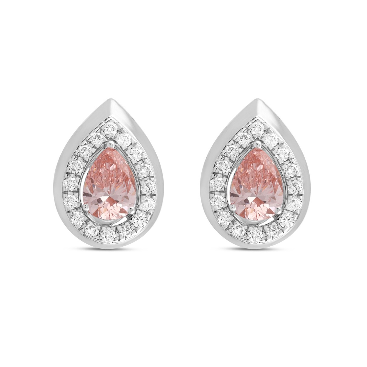 ETERNAL BLUSH COLLECTION LADIES EARRINGS 1 1/3CT ROUND/PEAR DIAMOND 14K WHITE GOLD (CENTER STONE PINK PEAR DIAMOND 1CT)