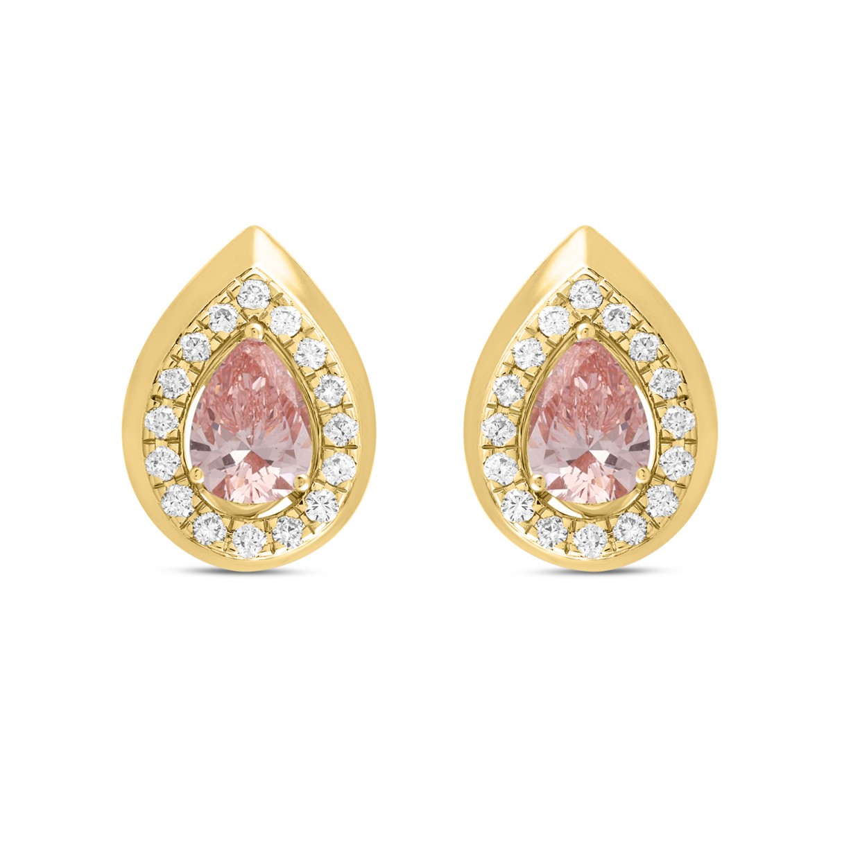 ETERNAL BLUSH COLLECTION LADIES EARRINGS 1 1/3CT ROUND/PEAR DIAMOND 14K YELLOW GOLD (CENTER STONE PINK PEAR DIAMOND 1CT)