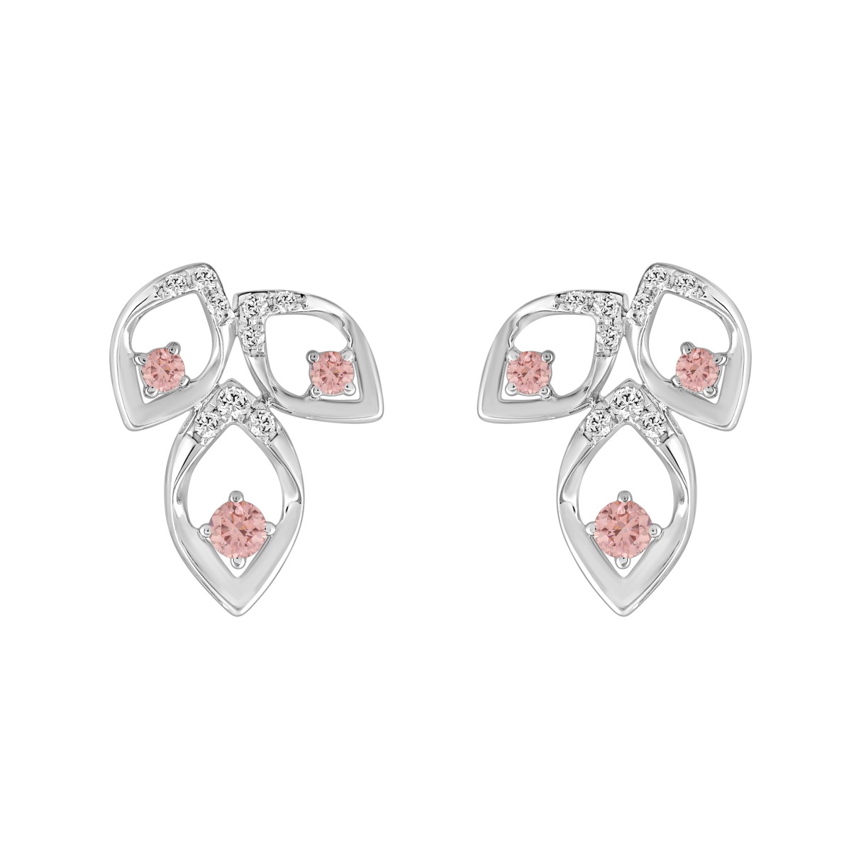 ETERNAL BLUSH COLLECTION LADIES EARRINGS 1/2CT ROUND DIAMOND 14K WHITE GOLD (CENTER STONE PINK ROUND DIAMOND 1/3CT)