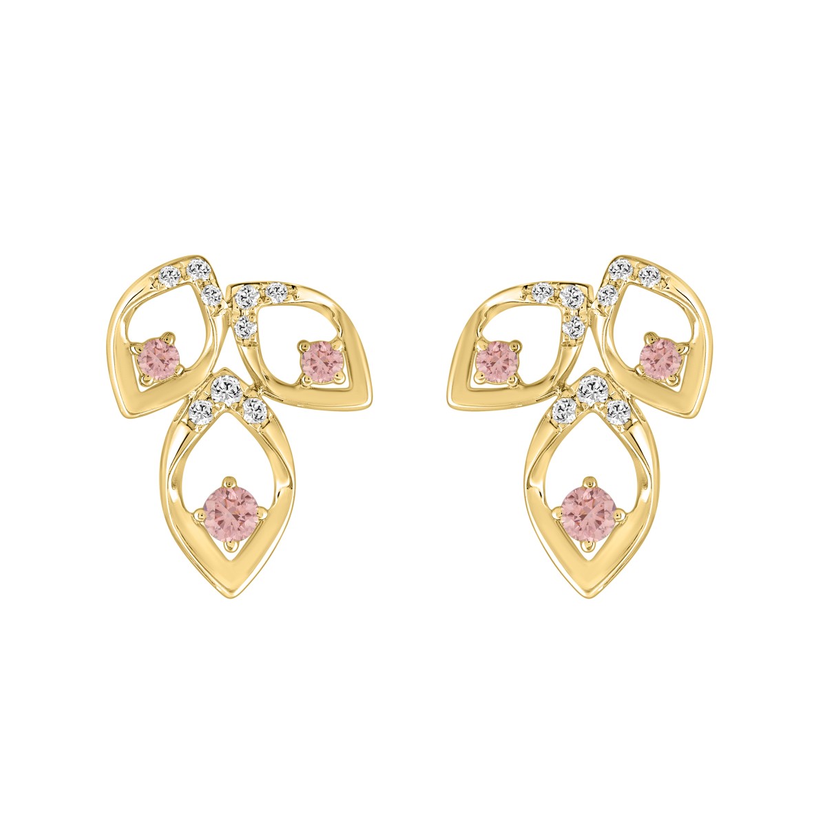 ETERNAL BLUSH COLLECTION LADIES EARRINGS 1/2CT ROUND DIAMOND 14K YELLOW GOLD (CENTER STONE PINK ROUND DIAMOND 1/3CT)