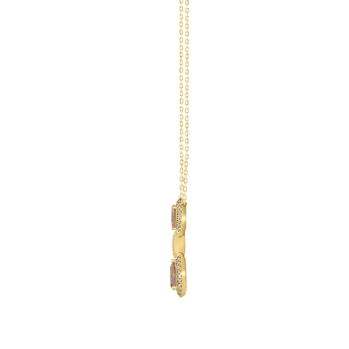 ETERNAL BLUSH COLLECTION LADIES NECKLACE 4 1/2CT ROUND/ PINK PEAR DIAMOND 14K YELLOW GOLD