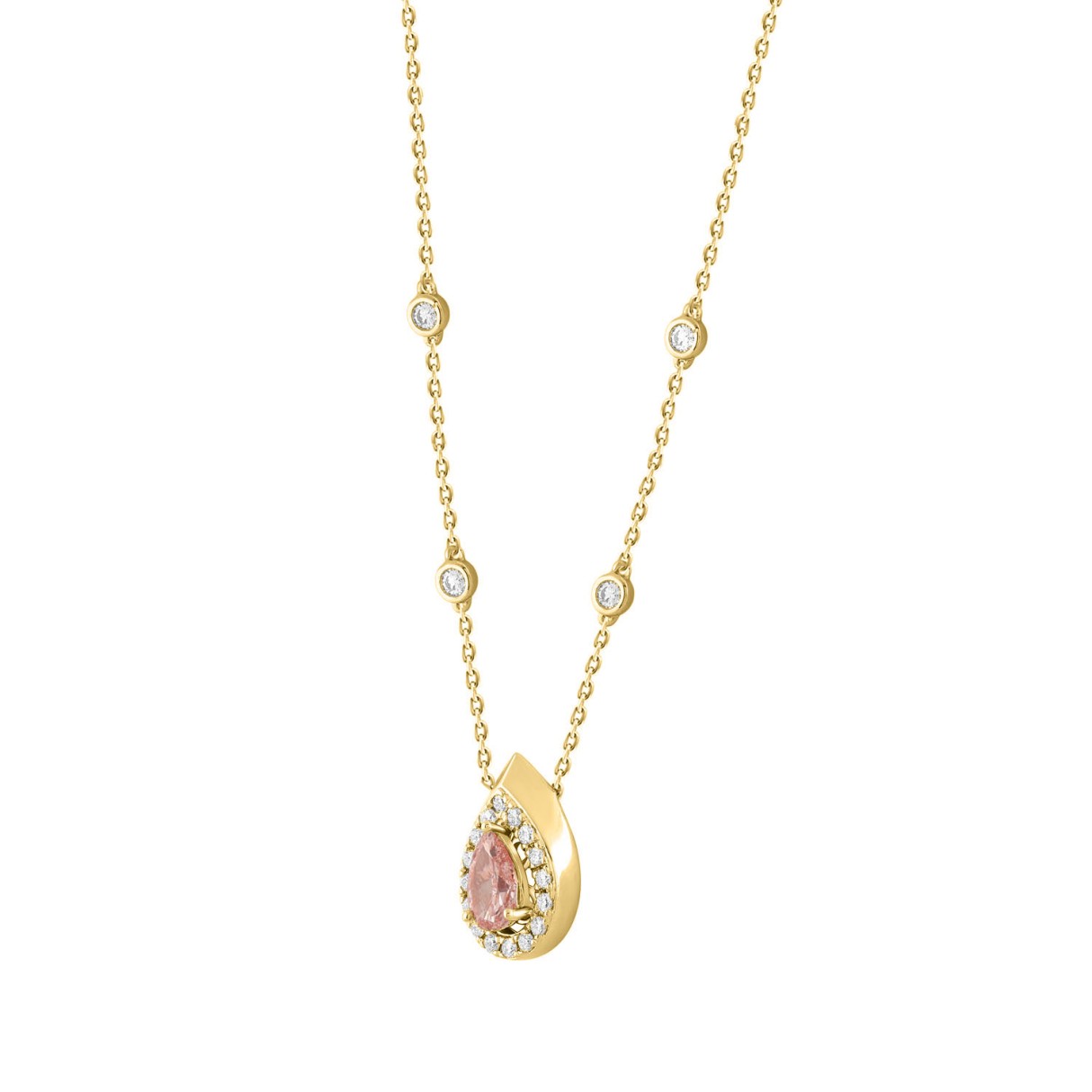ETERNAL BLUSH COLLECTION LADIES NECKLACE 3/4CT ROUND/PEAR DIAMOND 14K YELLOW GOLD (CENTER STONE PINK PEAR DIAMOND 1/2CT)