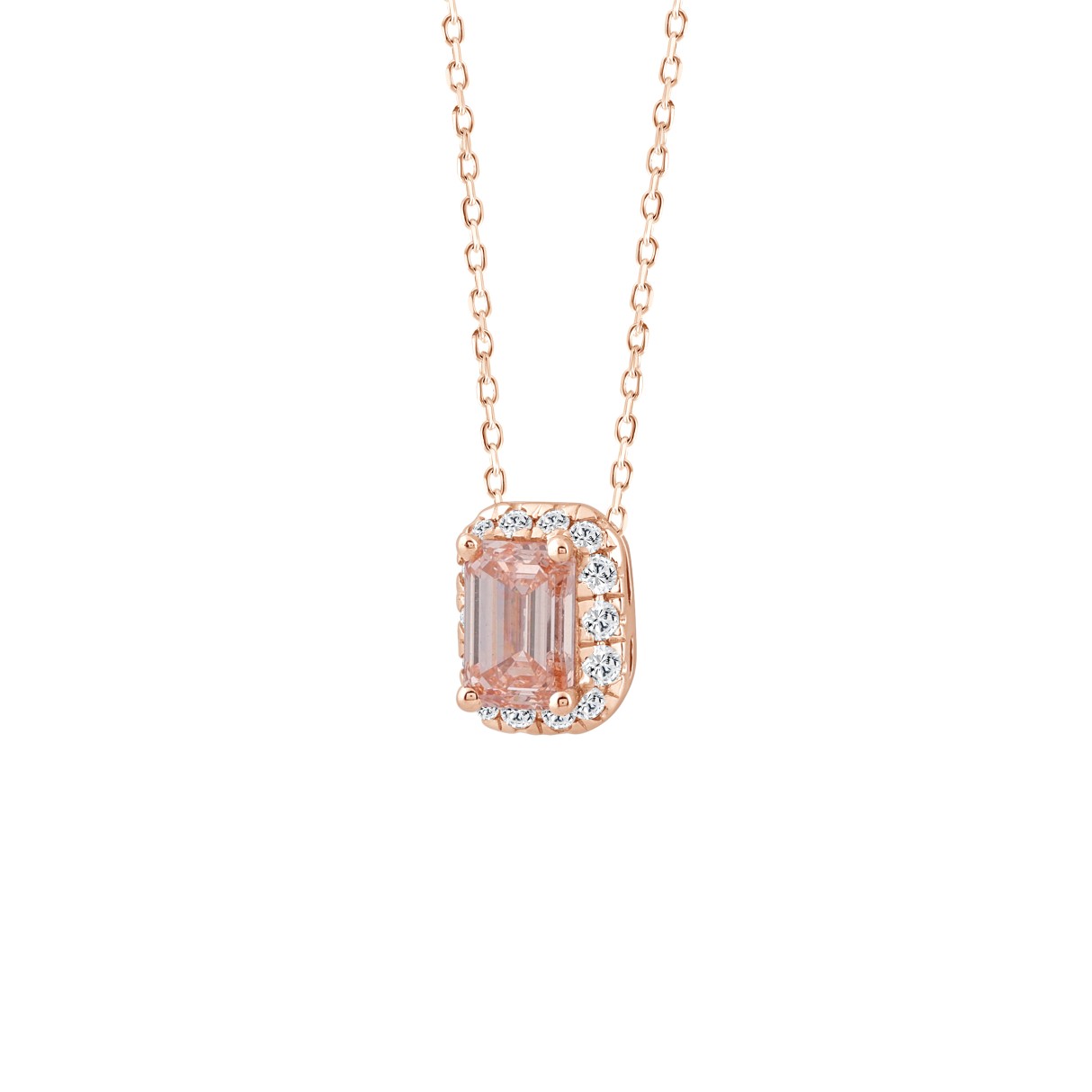 ETERNAL BLUSH COLLECTION LADIES PENDANT 1 1/5CT ROUND/EMERALD DIAMOND 14K ROSE GOLD WITH CHAIN (CENTER STONE PINK EMERALD DIAMOND 1CT)