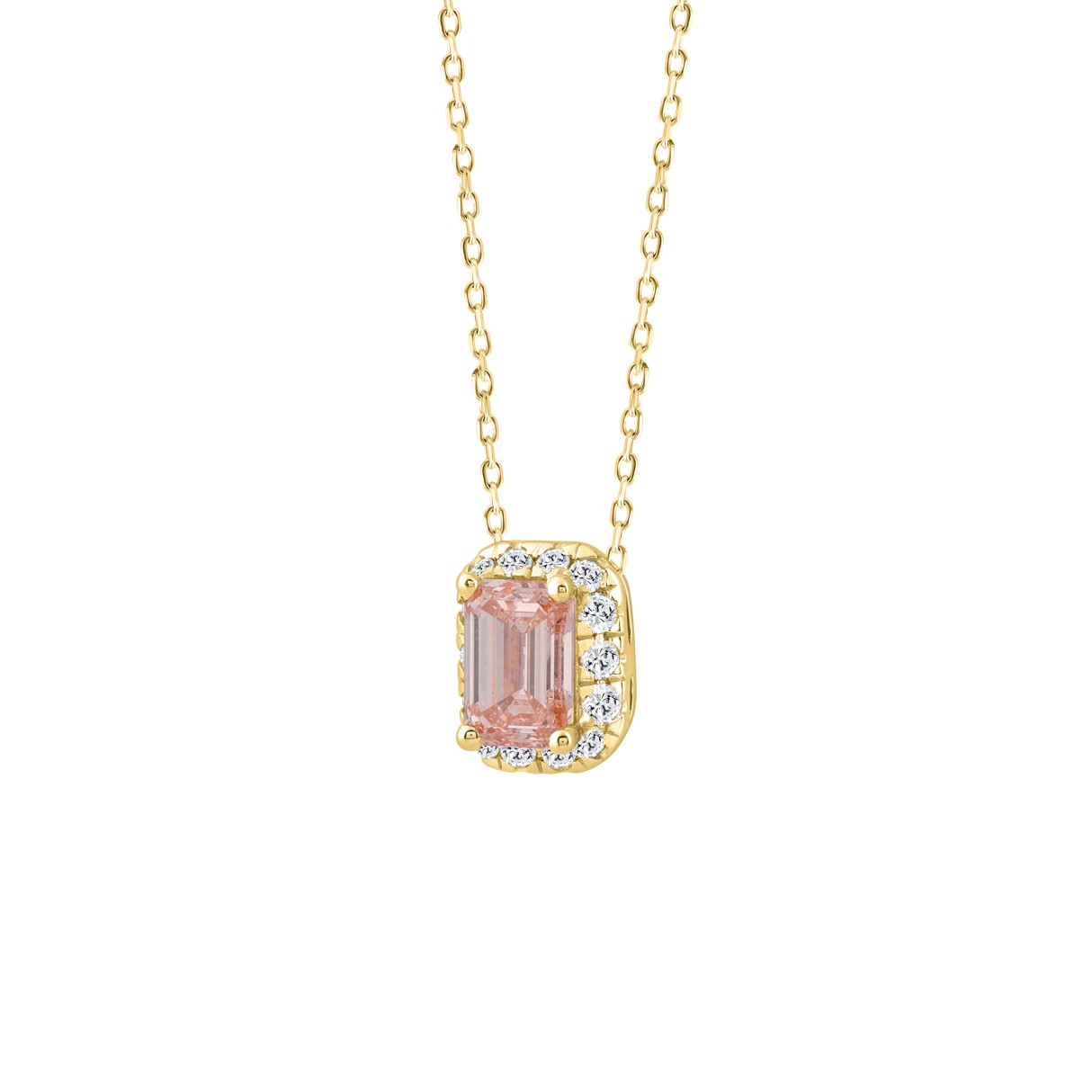 ETERNAL BLUSH COLLECTION LADIES PENDANT 1 1/5CT ROUND/EMERALD DIAMOND 14K YELLOW GOLD WITH CHAIN (CENTER STONE PINK EMERALD DIAMOND 1CT)