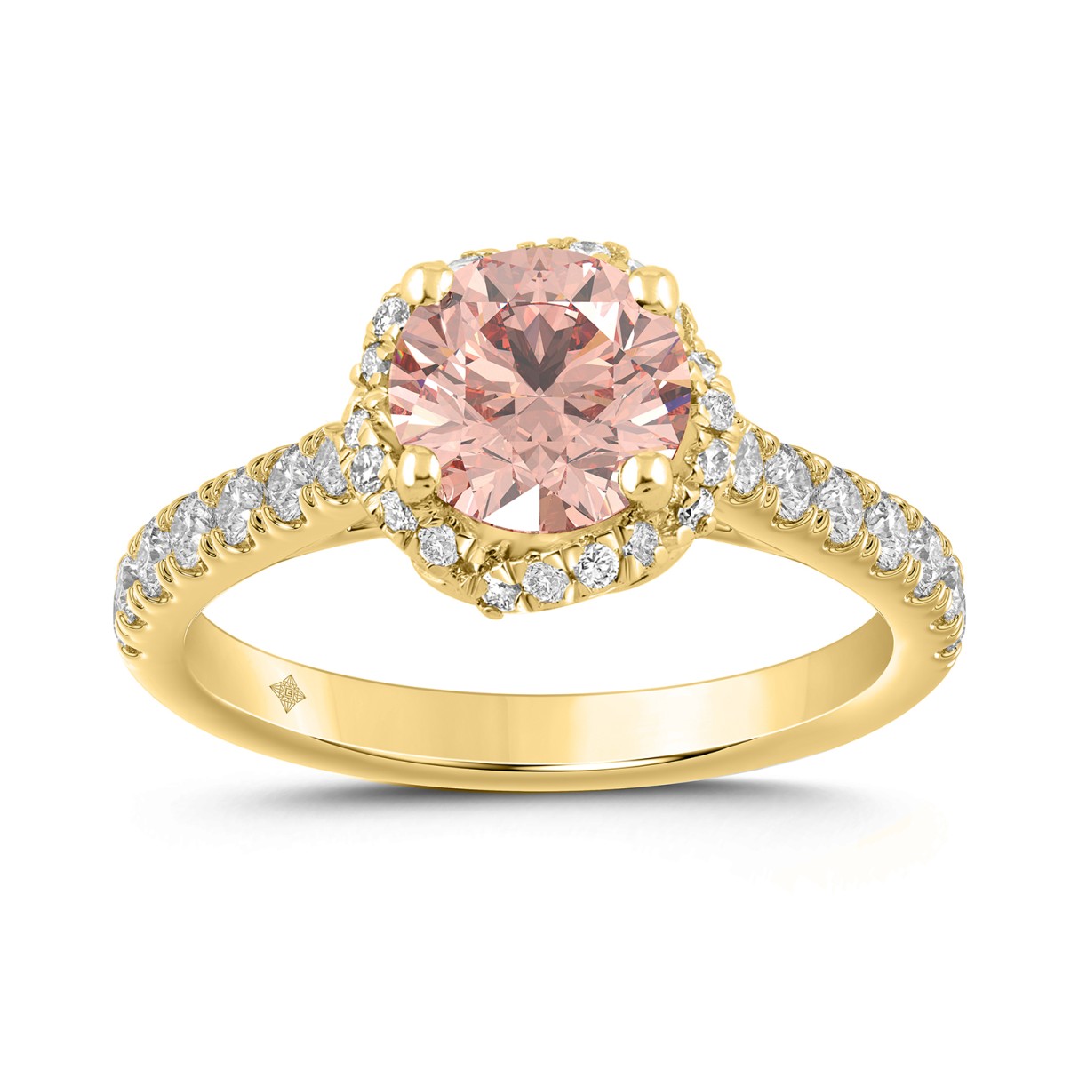 ETERNAL BLUSH COLLECTION LADIES RING 1 1/2CT ROUND DIAMOND 18K YELLOW GOLD (CENTER STONE PINK ROUND DIAMOND 1.00CT)