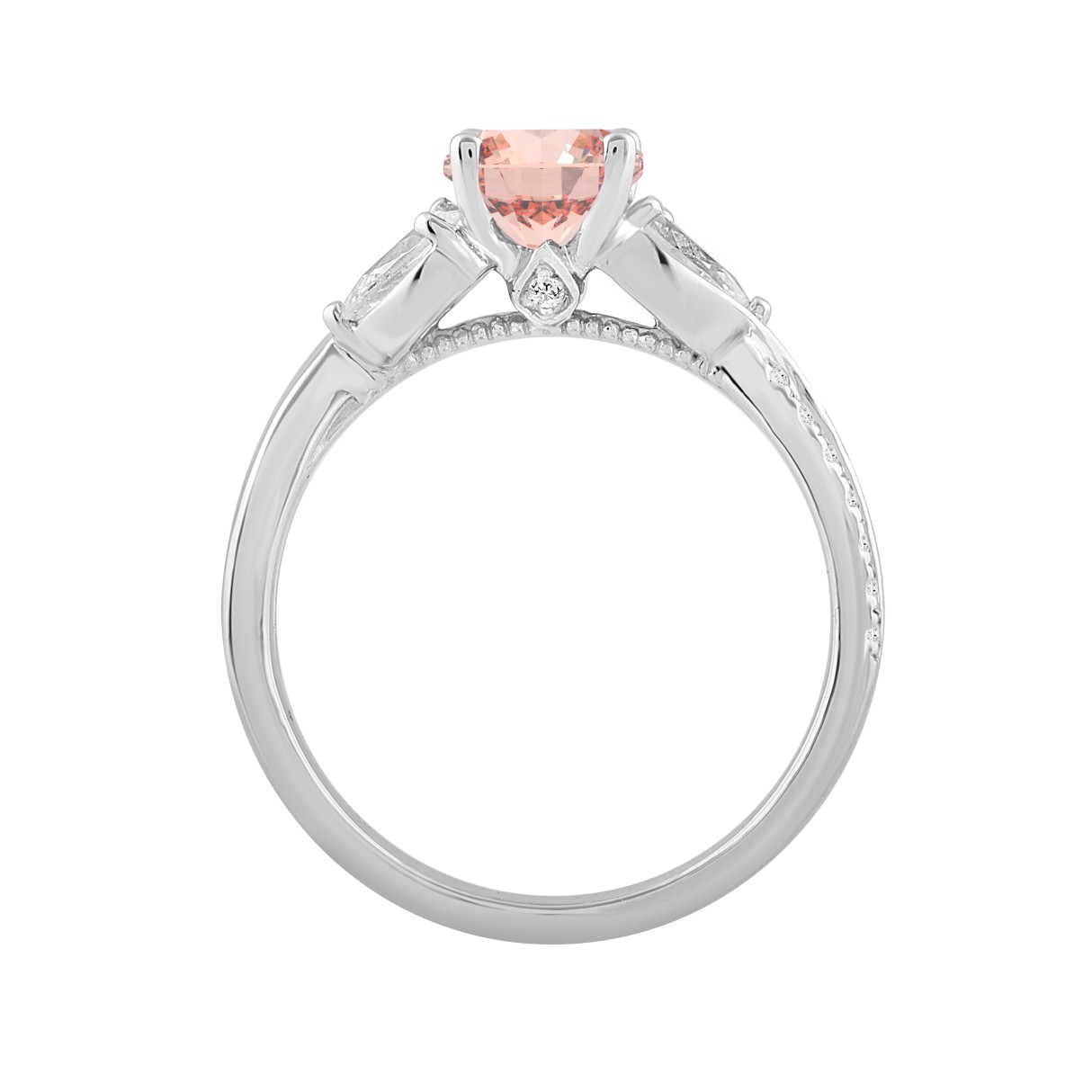 ETERNAL BLUSH COLLECTION LADIES RING 1 1/2CT ROUND/OVAL/PEAR DIAMOND 14K WHITE GOLD (CENTER STONE PINK OVAL DIAMOND 1CT)