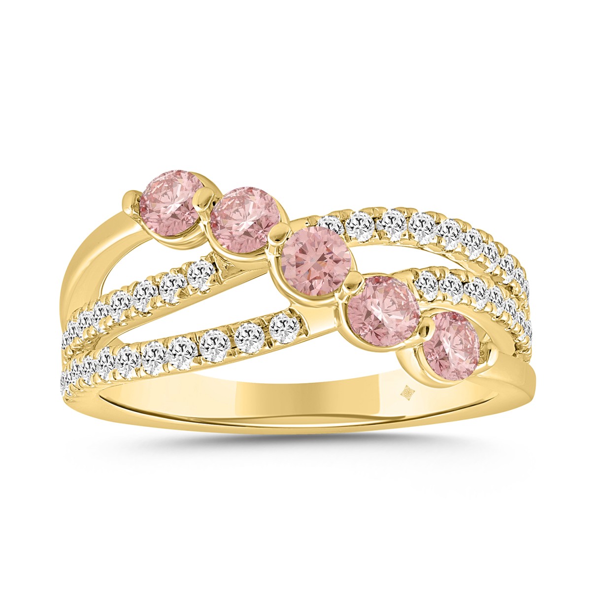 ETERNAL BLUSH COLLECTION LADIES RING 1CT ROUND DIAMOND 14K YELLOW GOLD (ROUND PINK)