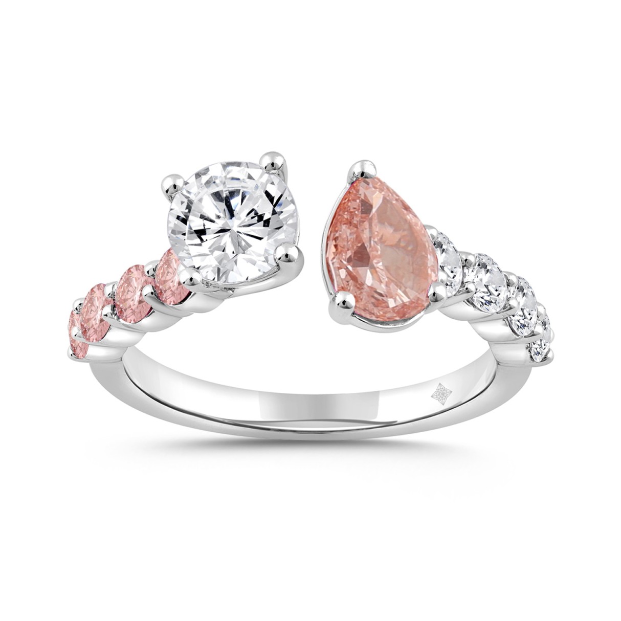 ETERNAL BLUSH COLLECTION LADIES RING 2 1/4CT ROUND/PEAR DIAMOND 14 K WHITE GOLD (CENTER STONE PINK PEAR DIAMOND 3/4CT / ROUND DIAMOND 3/4CT)