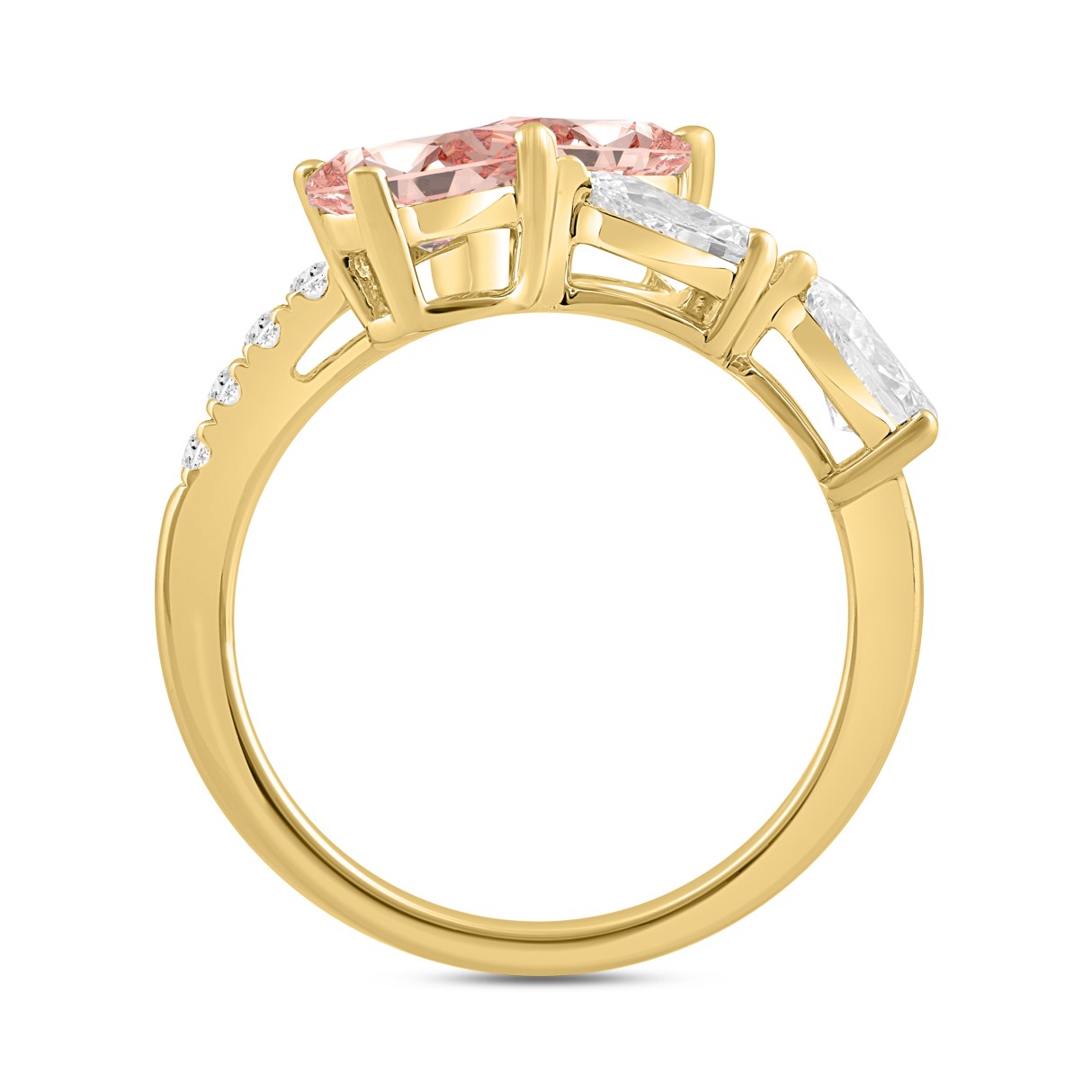 ETERNAL BLUSH COLLECTION LADIES RING 2 1/4CT ROUND/PEAR/OVAL DIAMOND 14K YELLOW GOLD (CENTER STONE PINK OVAL DIAMOND 3/4CT PINK PEAR DIAMOND 3/4CT)