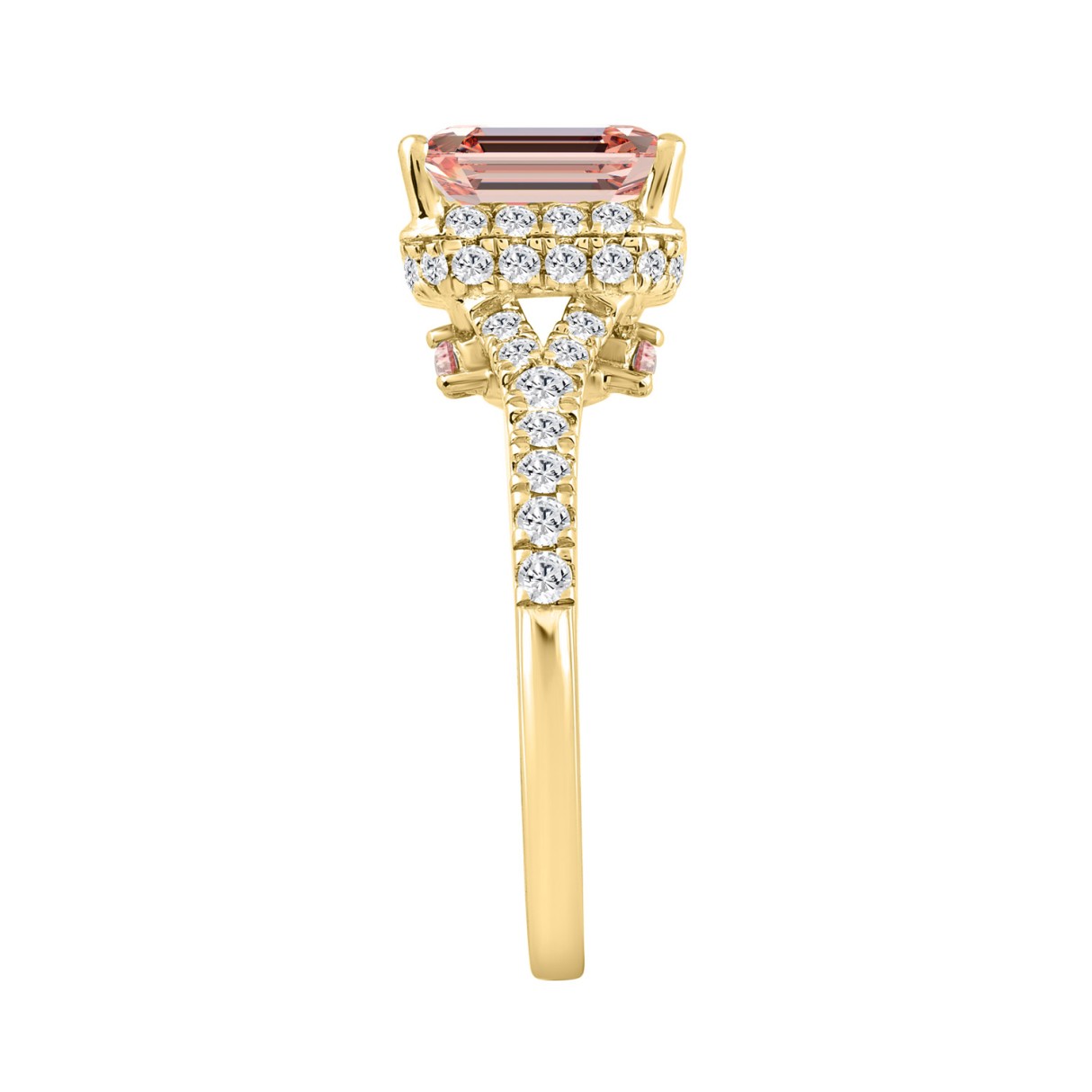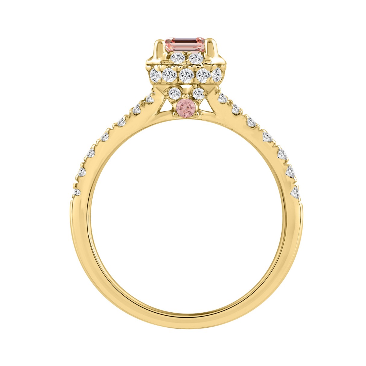 ETERNAL BLUSH COLLECTION LADIES RING 2 1/5CT ROUND/EMERALD DIAMOND 14K YELLOW GOLD (CENTER STONE PINK EMERALD DIAMOND 1 1/2CT)