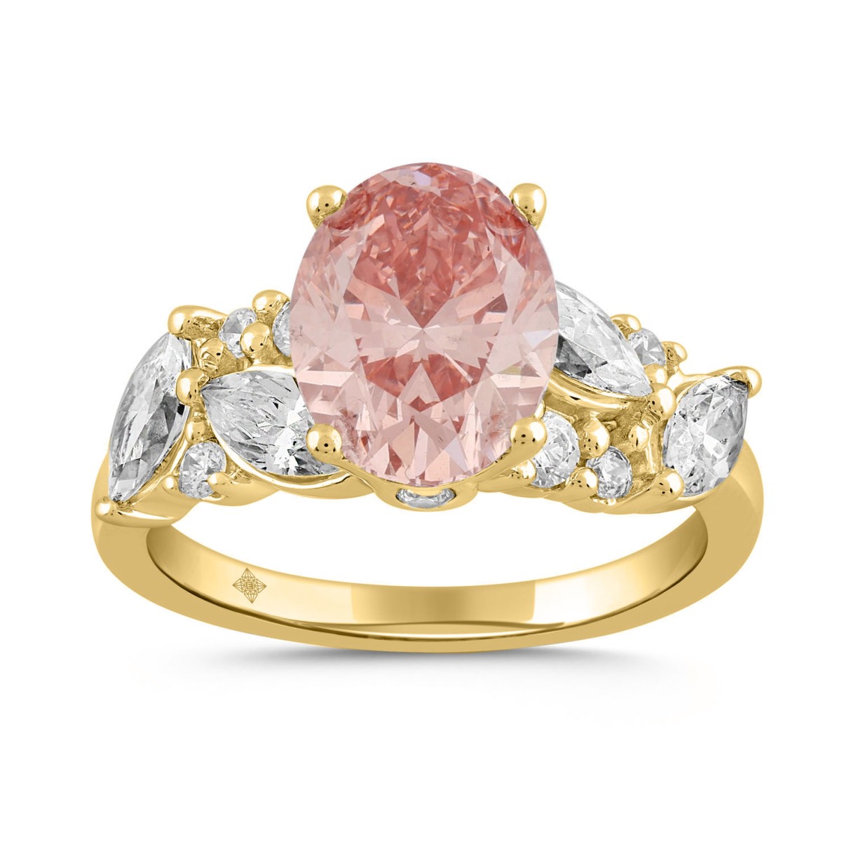 ETERNAL BLUSH COLLECTION LADIES RING 3 1/4CT ROUND/MARQUISE/OVAL DIAMOND 14K YELLOW GOLD (CENTER STONE PINK OVAL DIAMOND 2CT)
