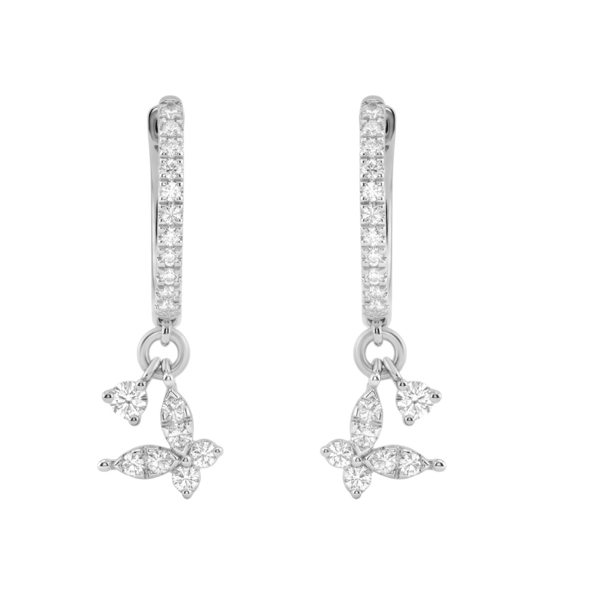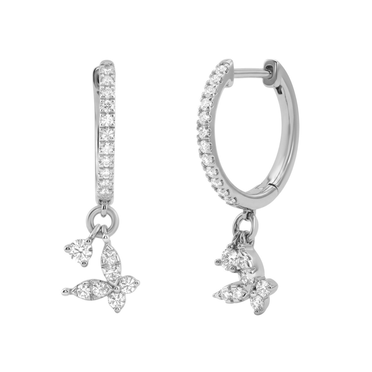 Fashion 10K White Gold 1/3Ct Ladies Hoop Earrings With Round Diamonds Butterfly Bliss Design For Ladies