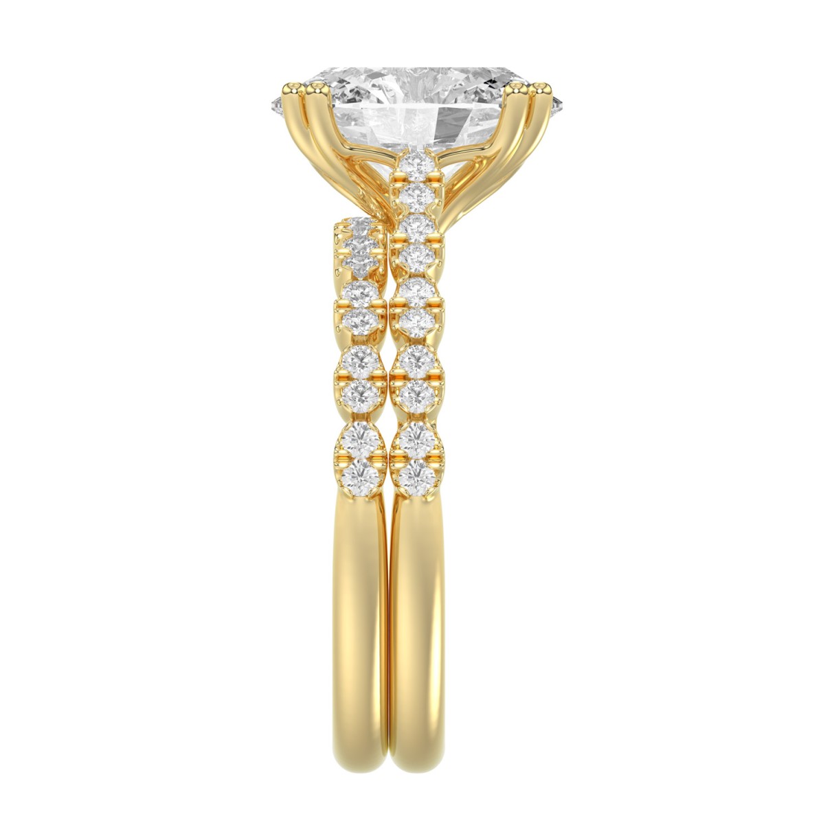 Ladies 14K Yellow Gold Ladies Elegance- Bridal Set 3 1/3CT Round & Oval Diamonds 3.00CT Oval Center stone (Color F-G Clarity VS1/VS2)