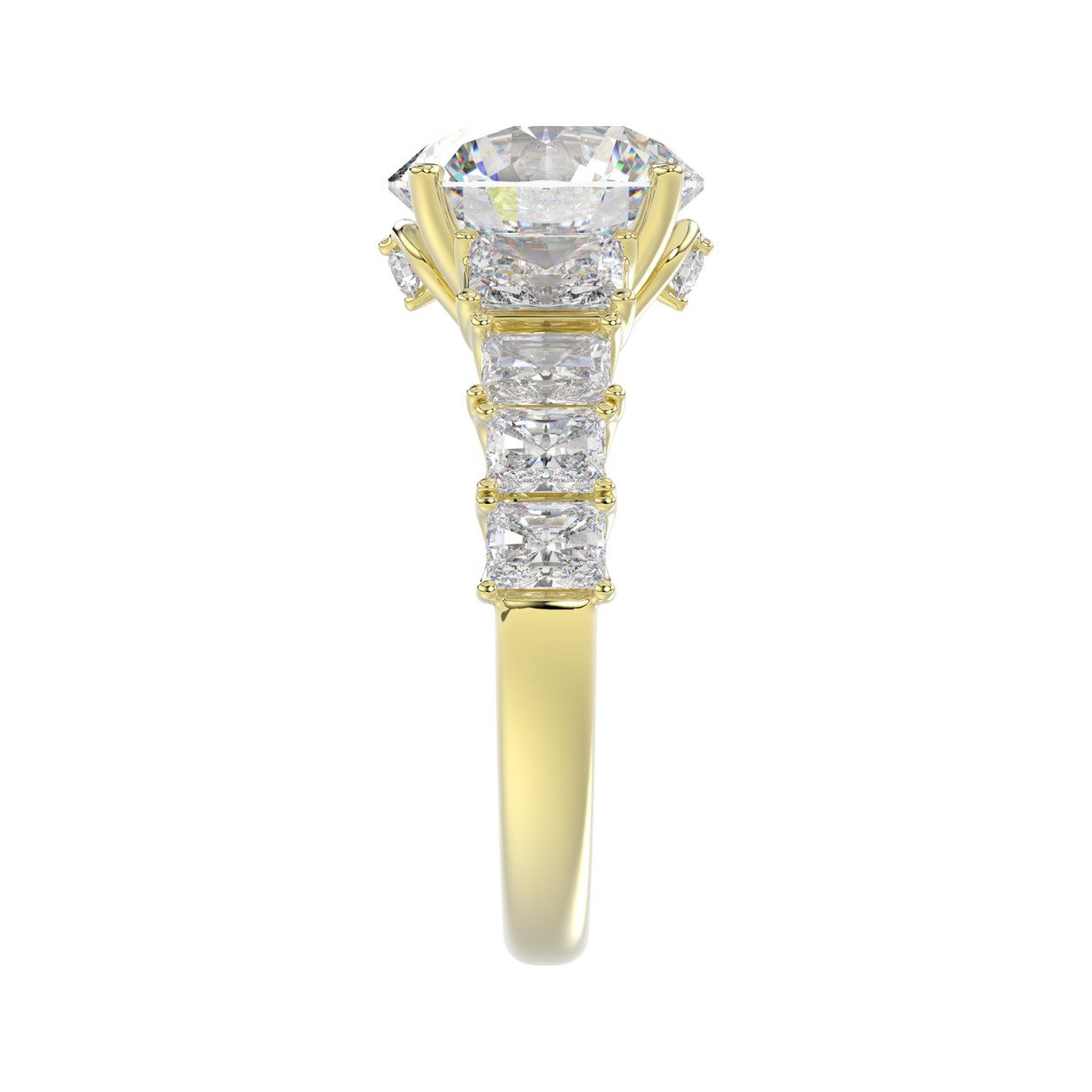 LADIES BRIDAL RING 4 3/4CT ROUND/EMERALD DIAMOND 14K YELLOW GOLD (CENTER STONE ROUND DIAMOND 3.00CT)