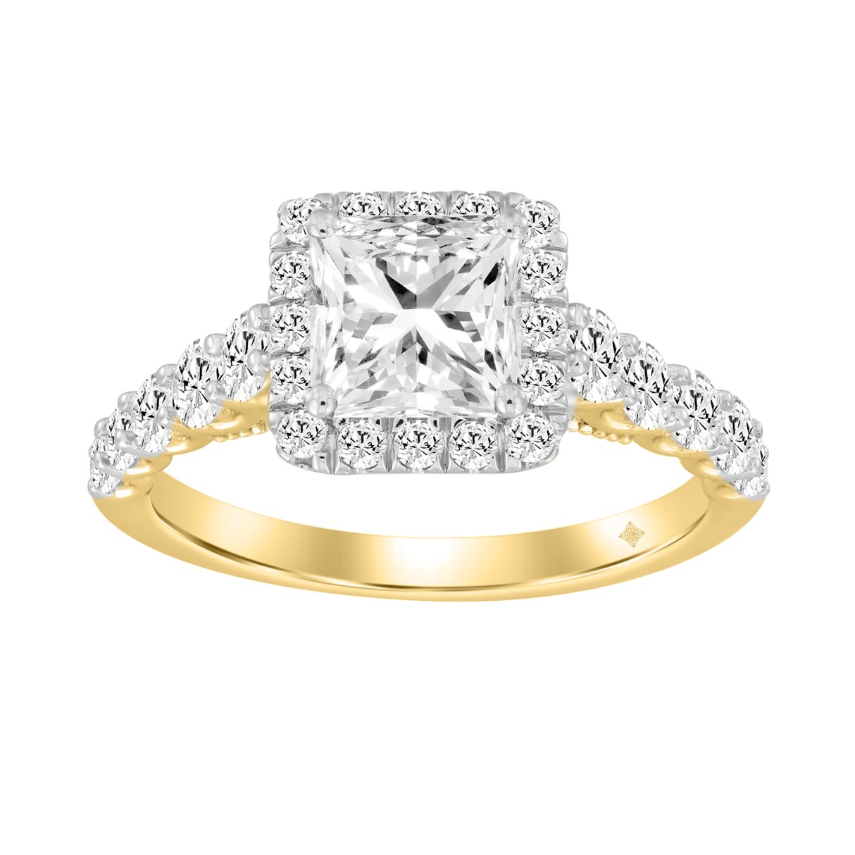 LADIES BRIDAL SET 2 1/2CT ROUND/PRINCESS DIAMOND 14K YELLOW GOLD (CENTER STONE PRINCESS DIAMOND 1CT )