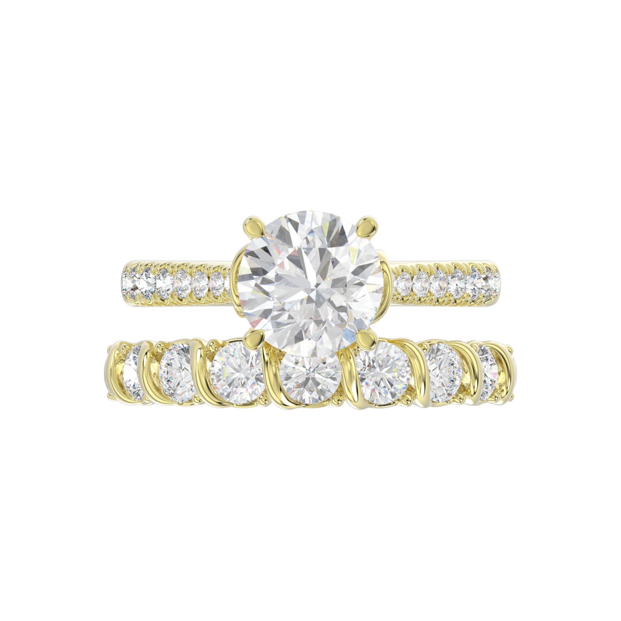LADIES BRIDAL SET 3 1/2CT ROUND DIAMOND 14K YELLOW GOLD (CENTER STONE ROUND DIAMOND 2.00CT)