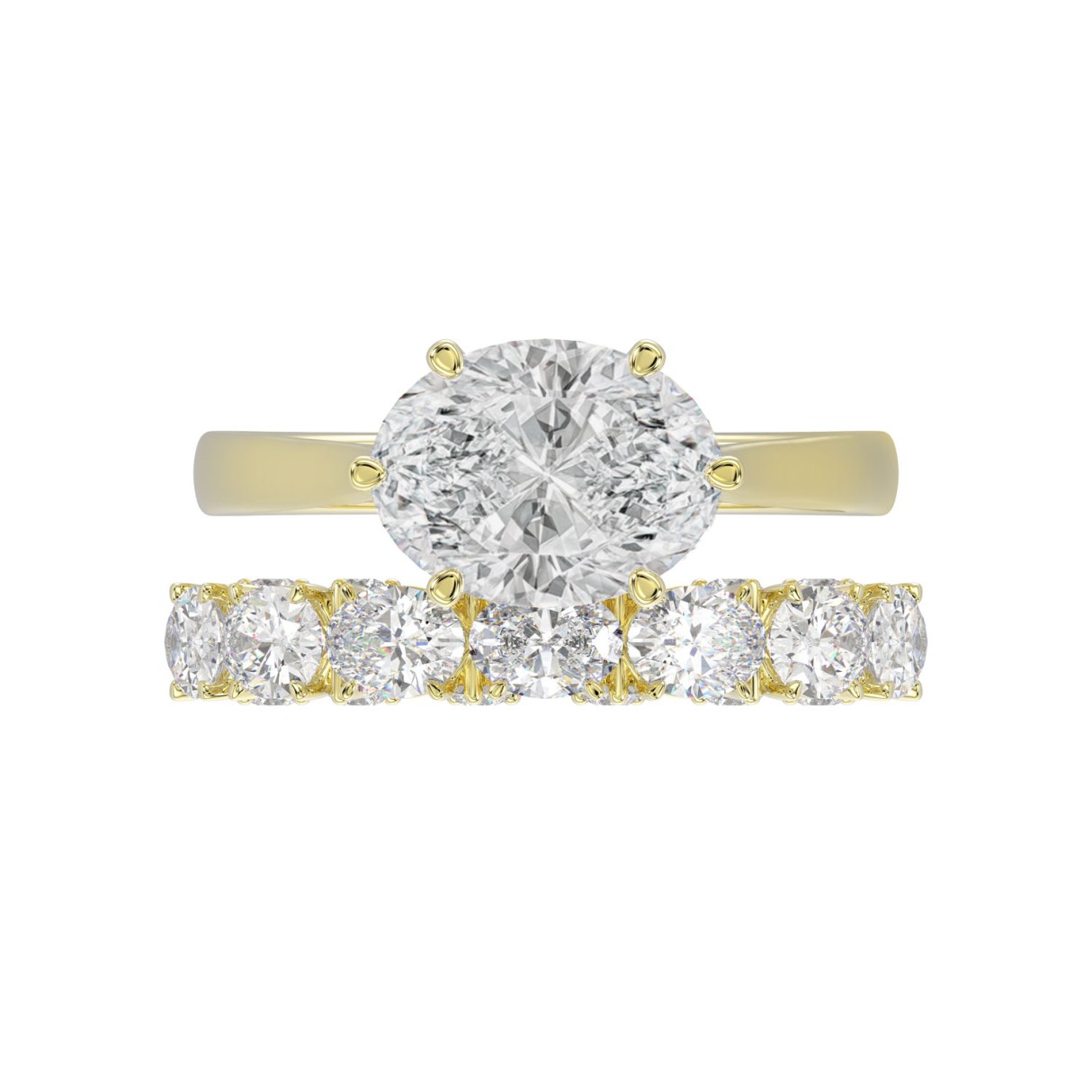 LADIES BRIDAL SET 3 1/3CT ROUND/OVAL DIAMOND 14K YELLOW GOLD