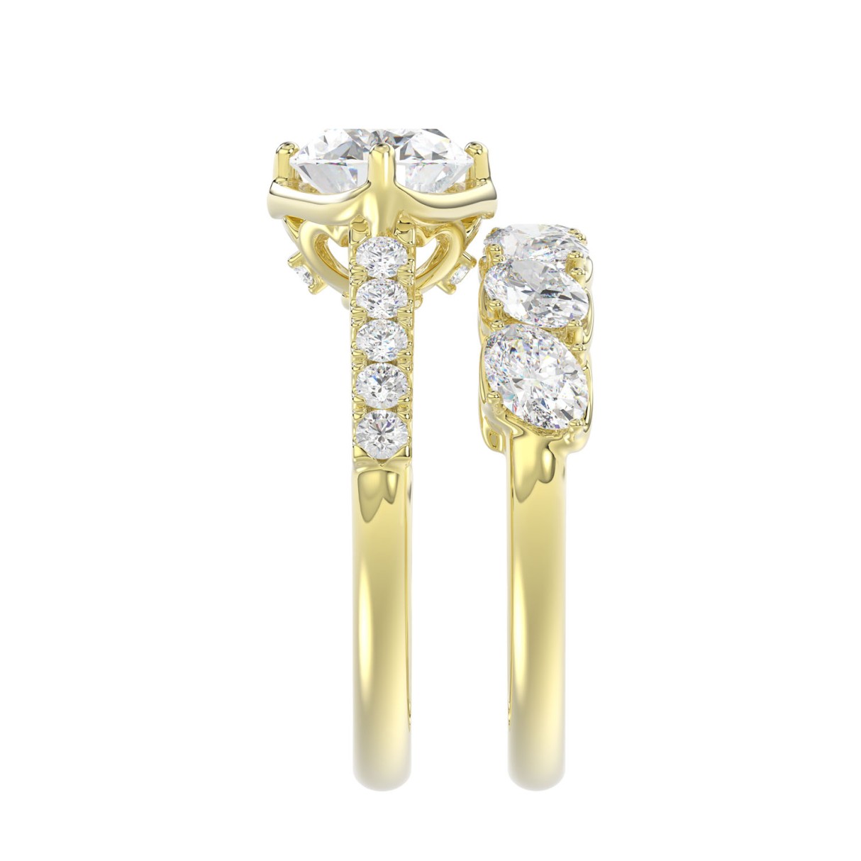 LADIES BRIDAL SET 3 3/4CT ROUND/OVAL DIAMOND 14K YELLOW GOLD (CENTER STONE OVAL DIAMOND 2.00CT)