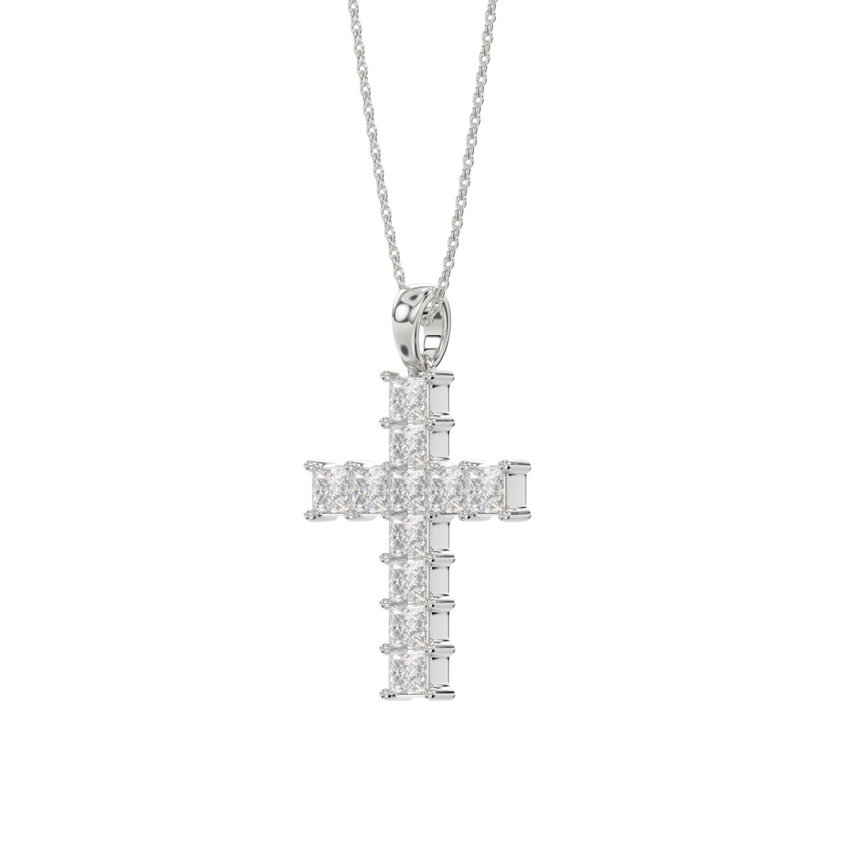 LADIES CROSS PENDANT WITH CHAIN 2 3/4CT PRINCESS DIAMOND 14K WHITE GOLD