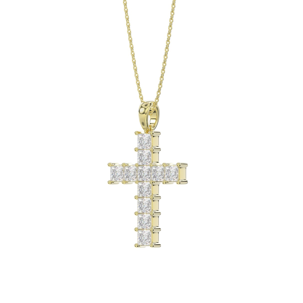 LADIES CROSS PENDANT WITH CHAIN 2 3/4CT PRINCESS DIAMOND 14K YELLOW GOLD