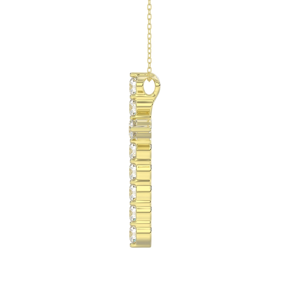 LADIES CROSS PENDANT WITH CHAIN 2CT ROUND DIAMOND 14K YELLOW GOLD