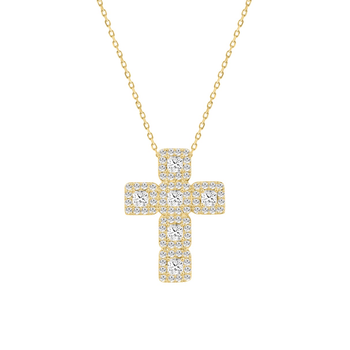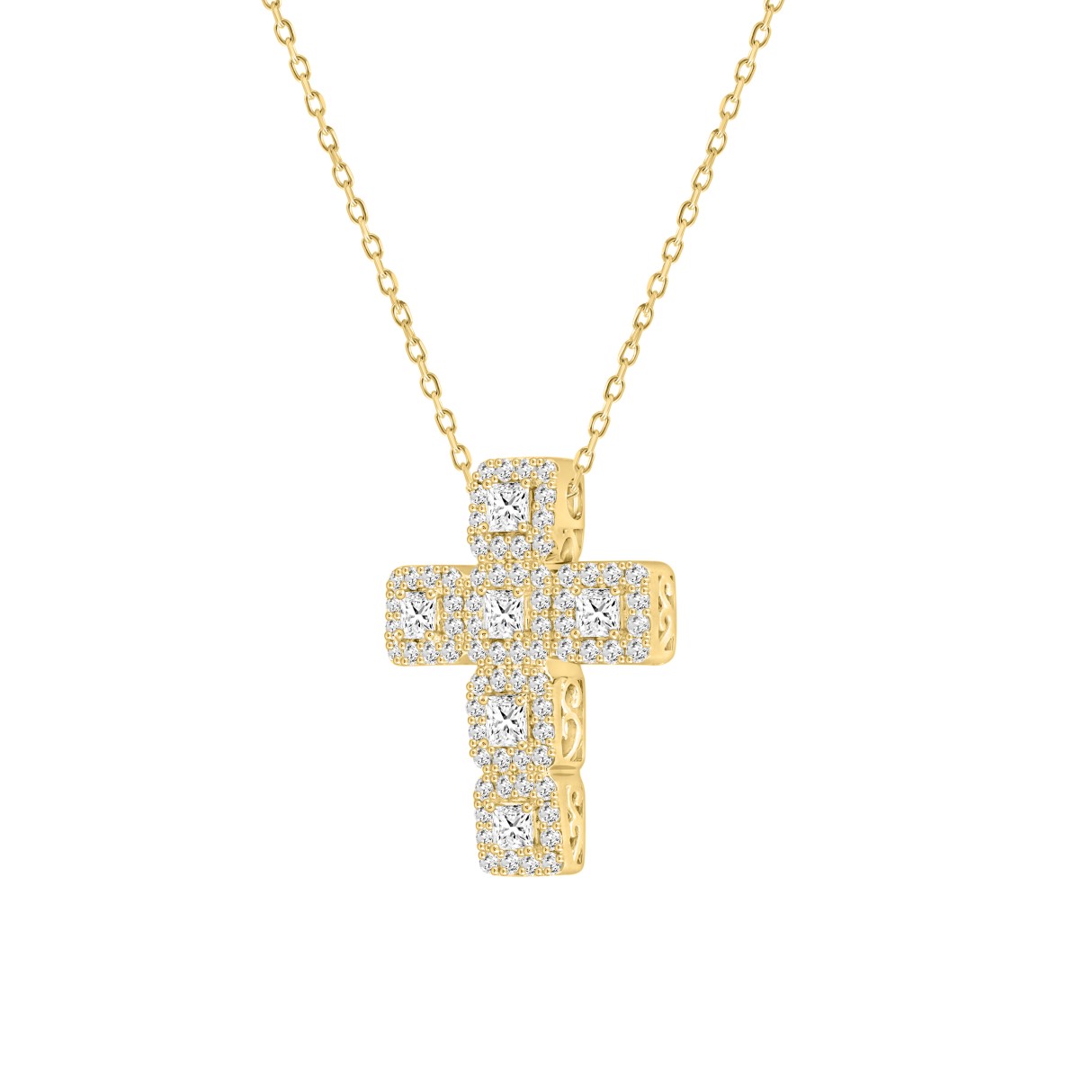 LADIES CROSS PENDANT WITH CHAIN 3CT ROUND/PRINCESS DIAMOND 14K YELLOW GOLD