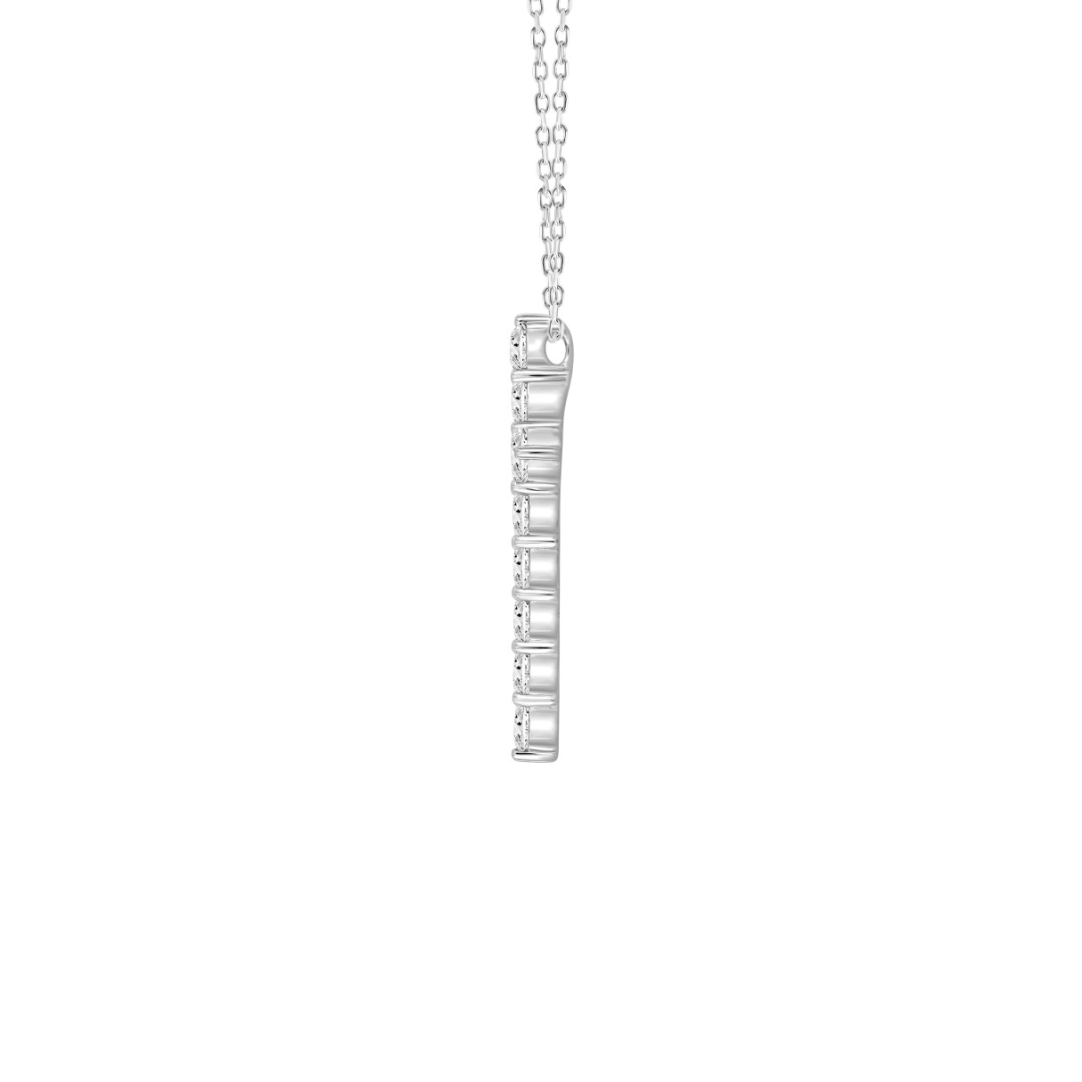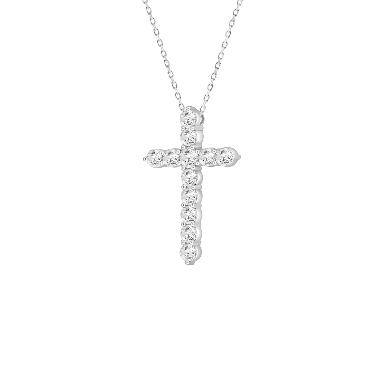 LADIES CROSS PENDANT WITH CHAIN 5CT ROUND DIAMOND 14K WHITE GOLD
