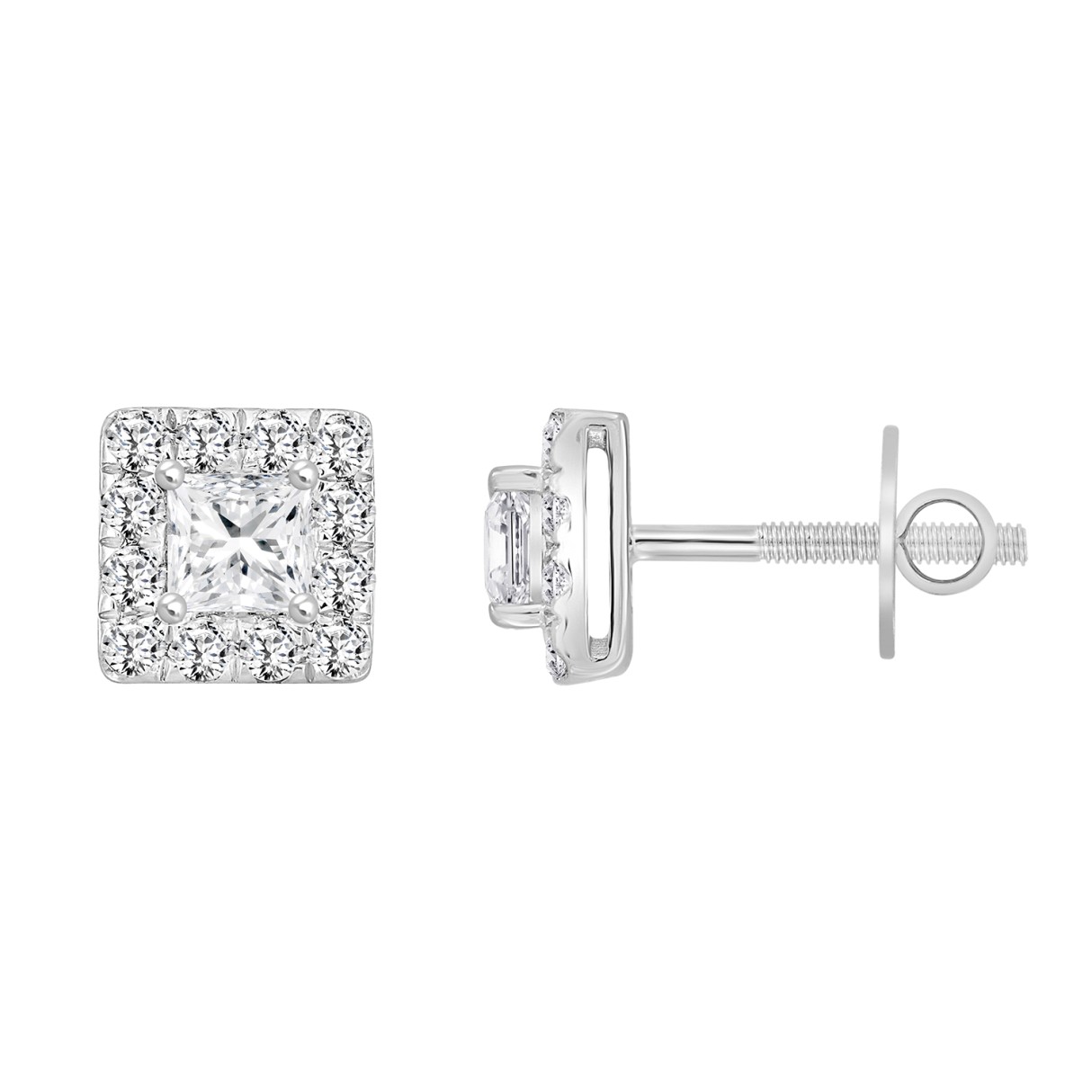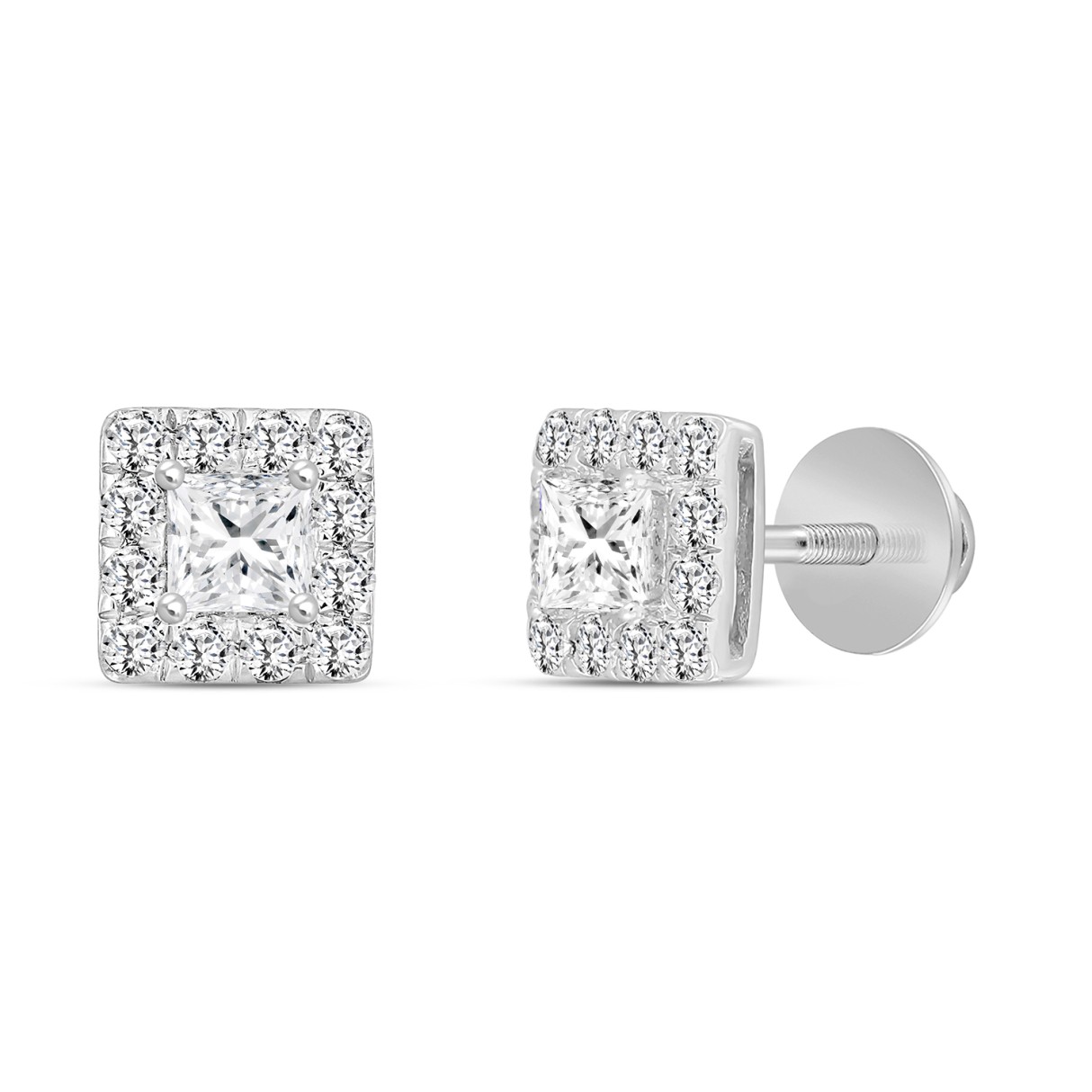 LADIES EARRINGS 1.00CT ROUND/PRINCESS DIAMOND 18K WHITE GOLD