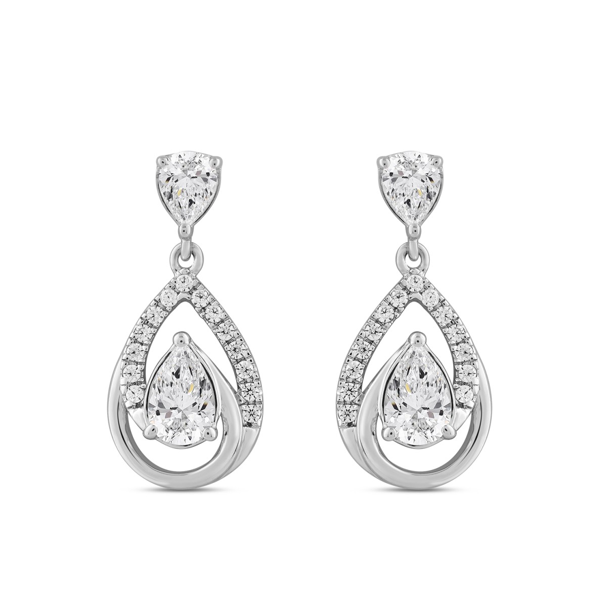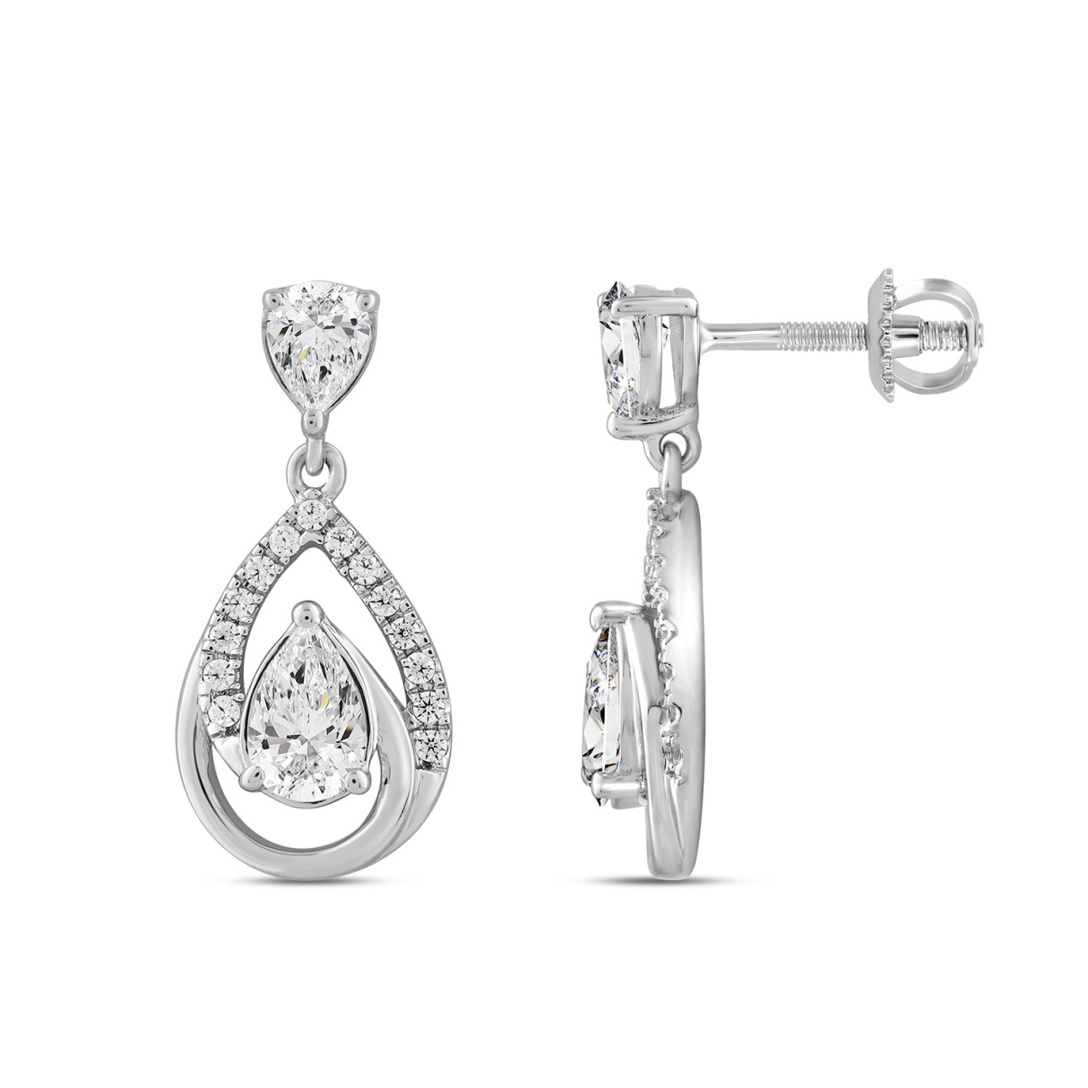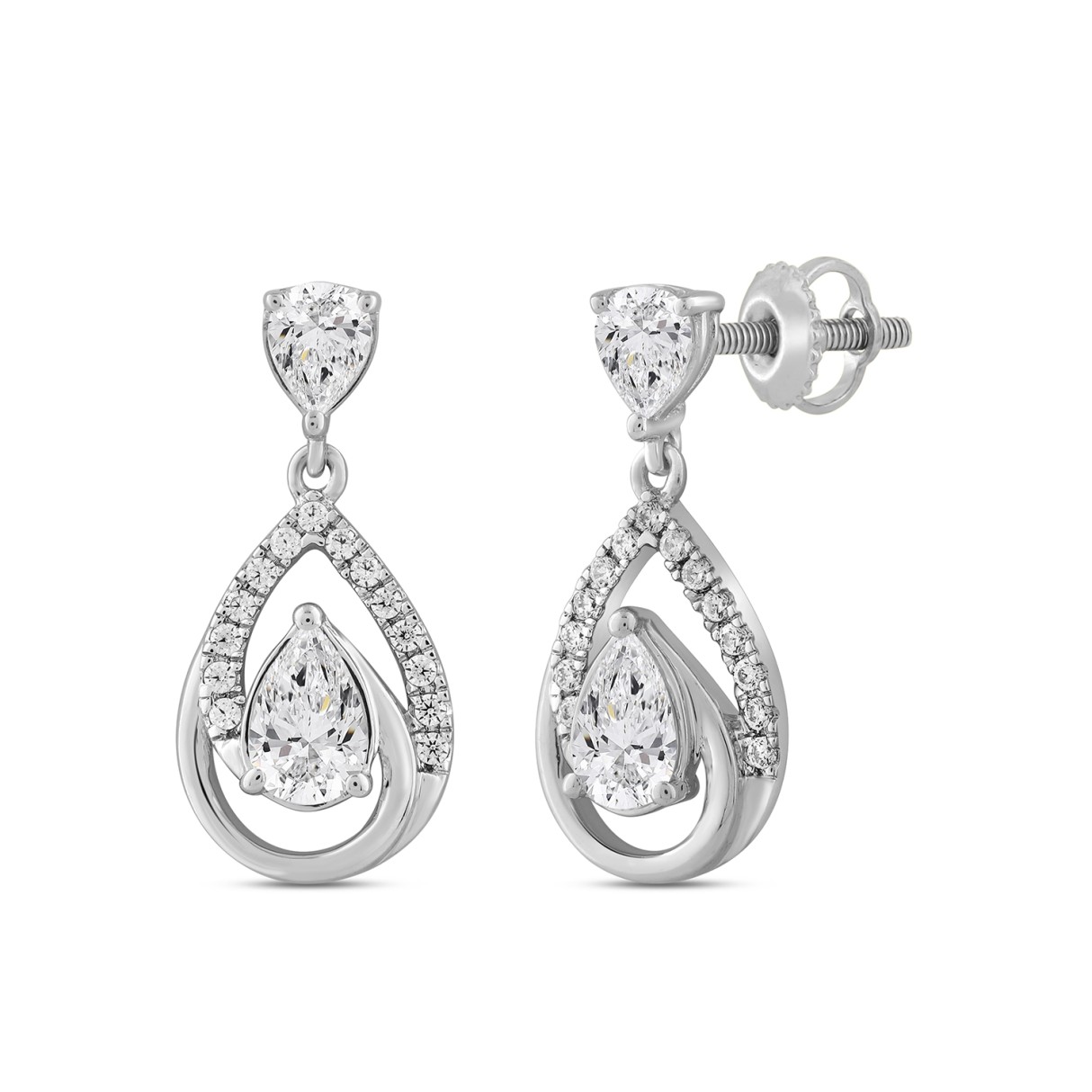 LADIES EARRINGS 1 1/2CT ROUND/PEAR DIAMOND 14K WHITE GOLD