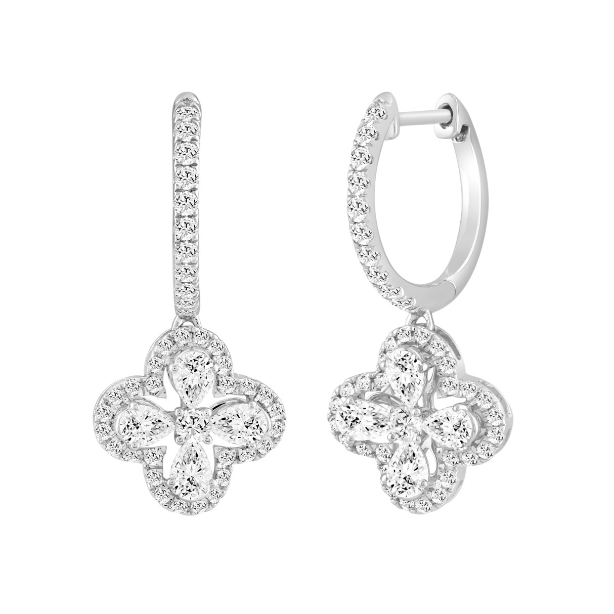 LADIES EARRINGS 2.35CT ROUND/PEAR DIAMOND 14K WHITE GOLD