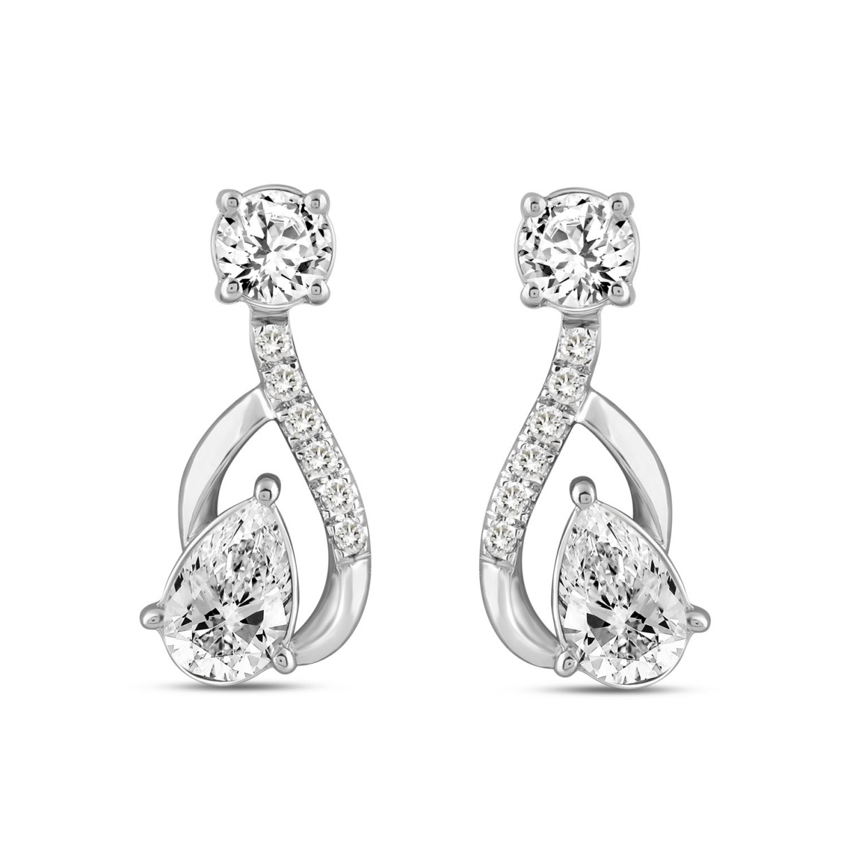 LADIES EARRINGS 2.35CT ROUND/PEAR DIAMOND 14K WHITE GOLD