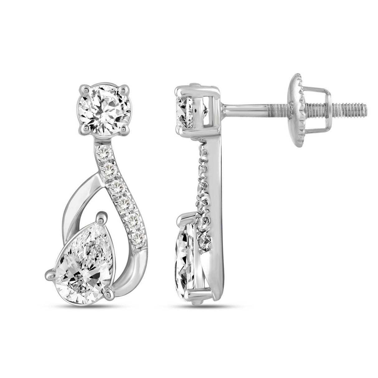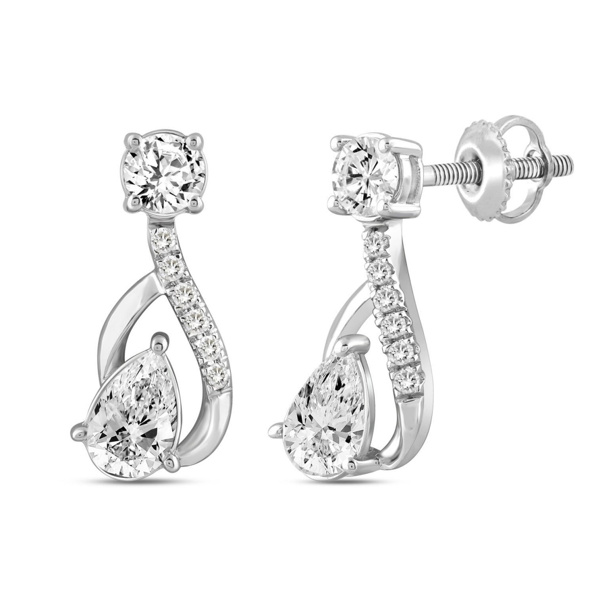 LADIES EARRINGS 1 1/2CT ROUND/PEAR DIAMOND 14K WHITE GOLD