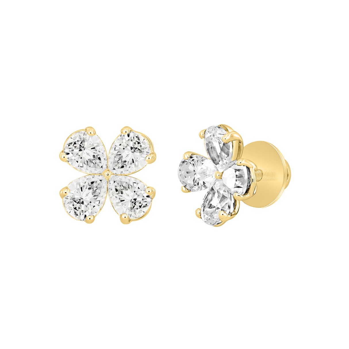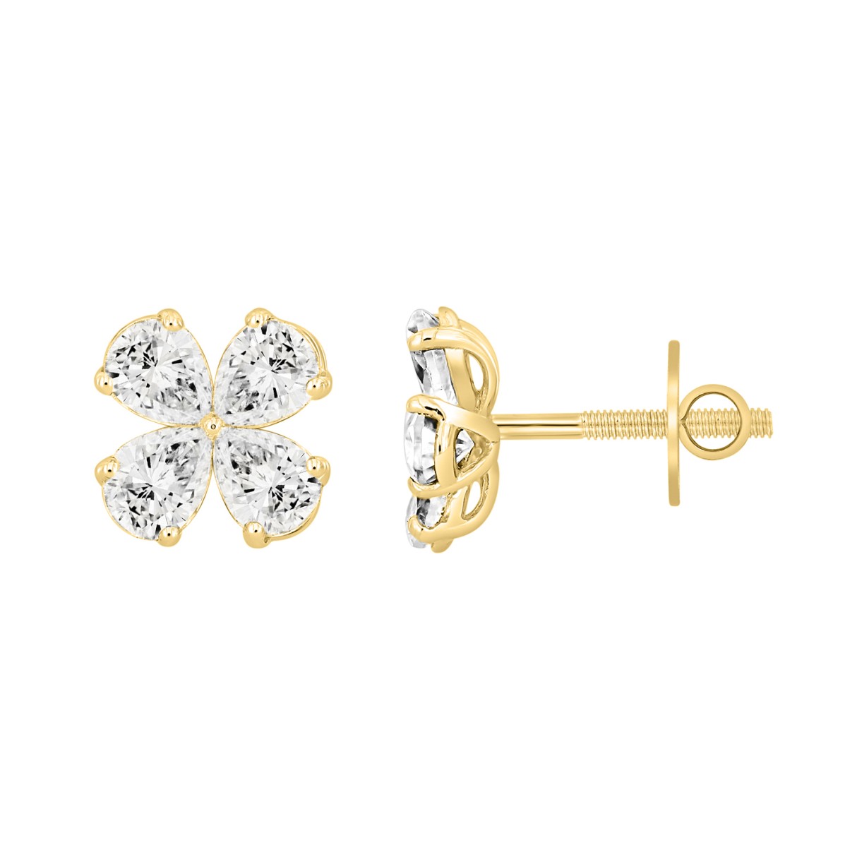 LADIES EARRINGS 1 1/2CT ROUND/PEAR DIAMOND 14K YELLOW GOLD