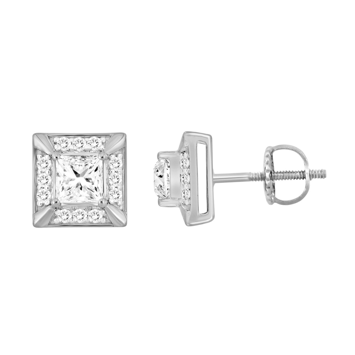 LADIES EARRINGS 1 1/4CT ROUND/PRINCESS DIAMOND 10K WHITE GOLD