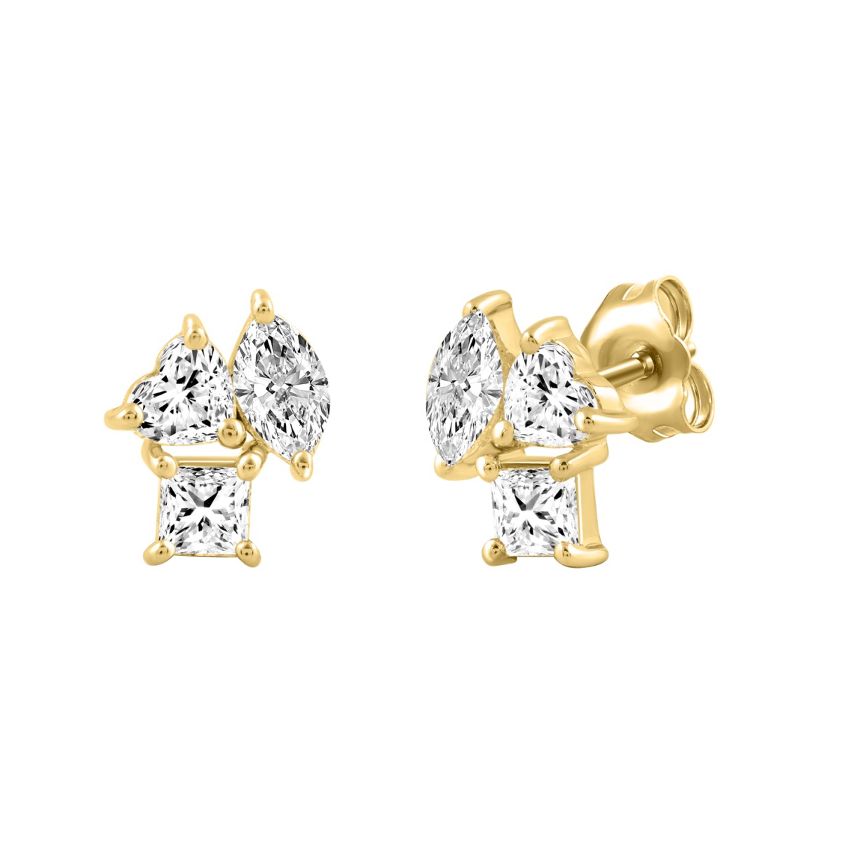 LADIES EARRINGS 1 1/5CT PRINCESS/MARQUISE/HEART DIAMOND 14K YELLOW GOLD