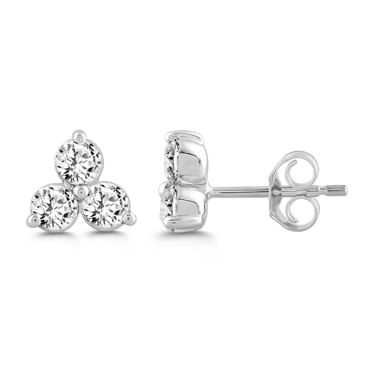 LADIES EARRINGS 1CT ROUND DIAMOND 14K WHITE GOLD