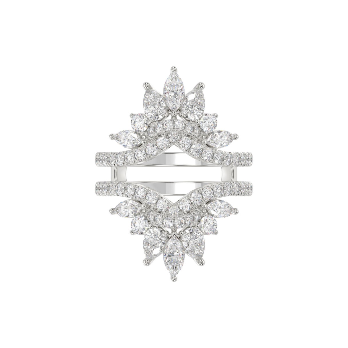 LADIES ENHANCERS RING 2 1/4CT ROUND/PEAR/MARQUISE DIAMOND 14K WHITE GOLD