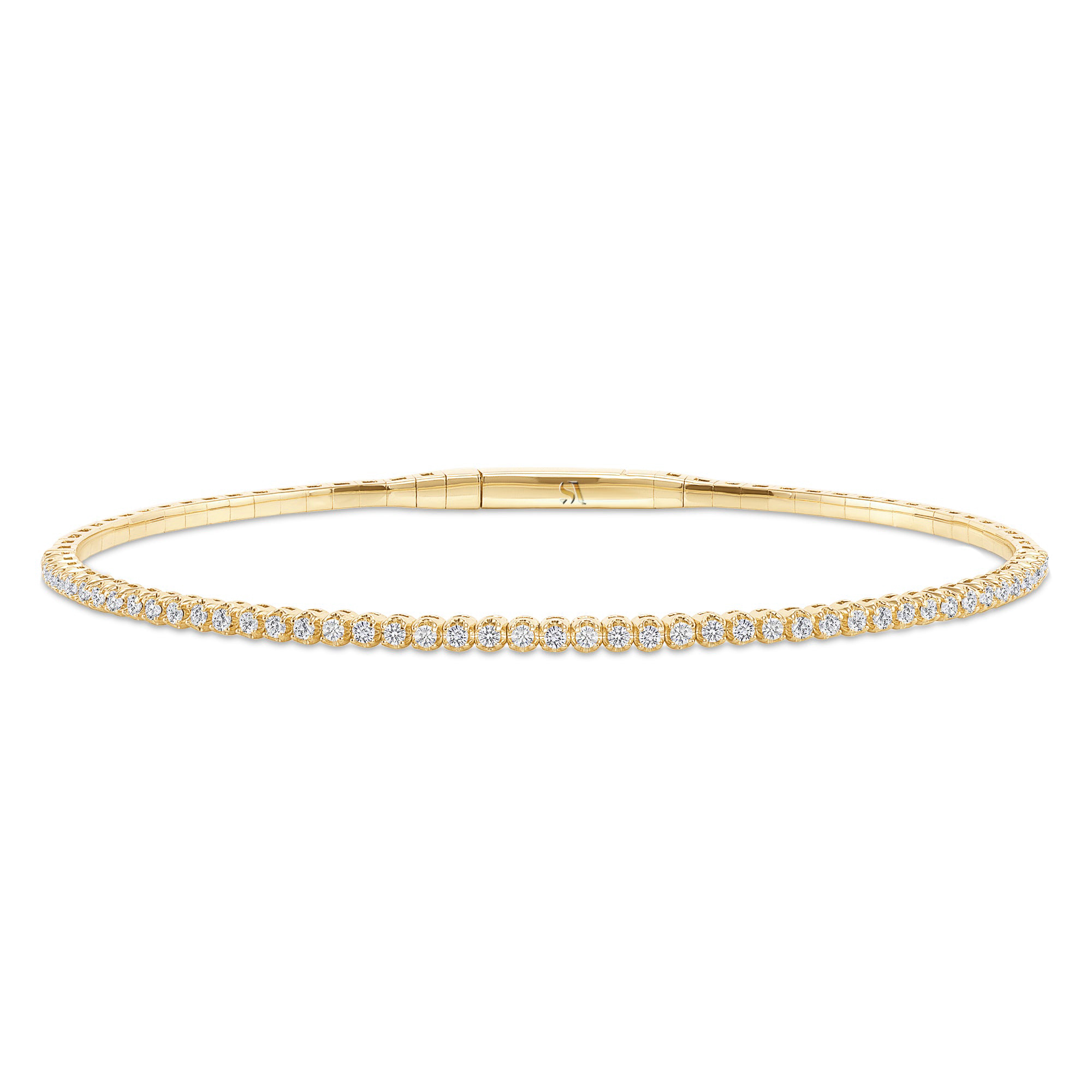 LADIES FULL FLEXIBLE BANGLE 2.00CT ROUND DIAMOND 14K YELLOW GOLD