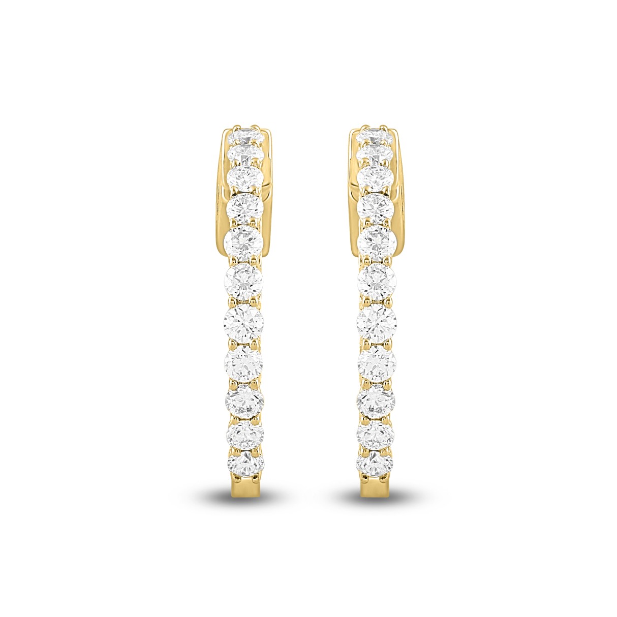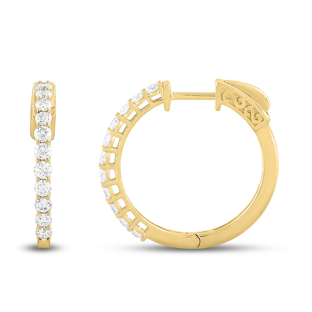 LADIES HOOP EARRINGS 1.50CT ROUND DIAMOND 14K YELLOW GOLD