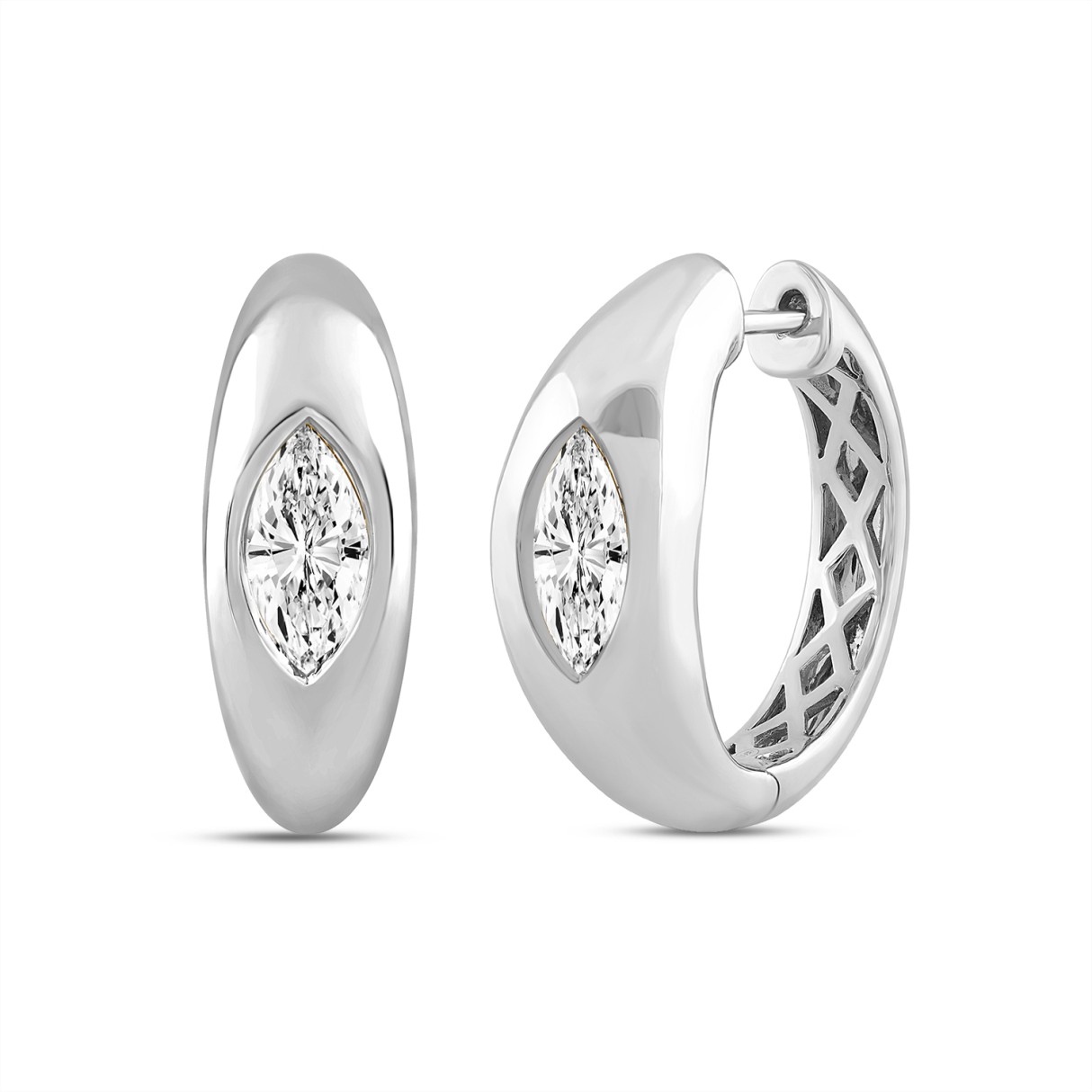 LADIES HOOP EARRINGS 2CT MARQUISE DIAMOND 14K WHITE GOLD